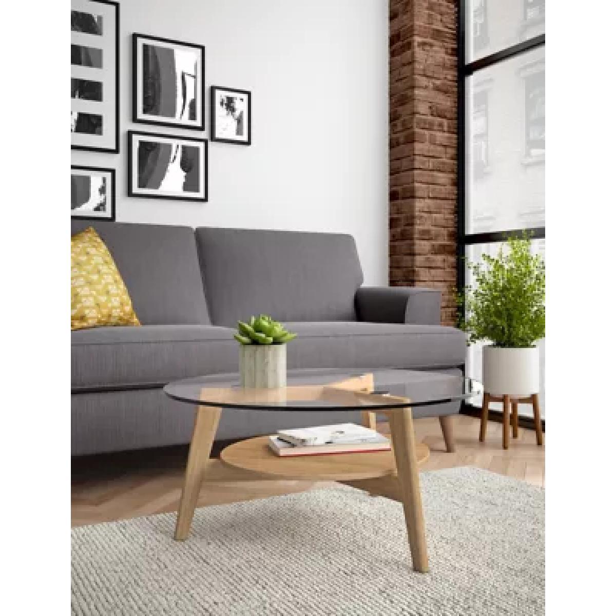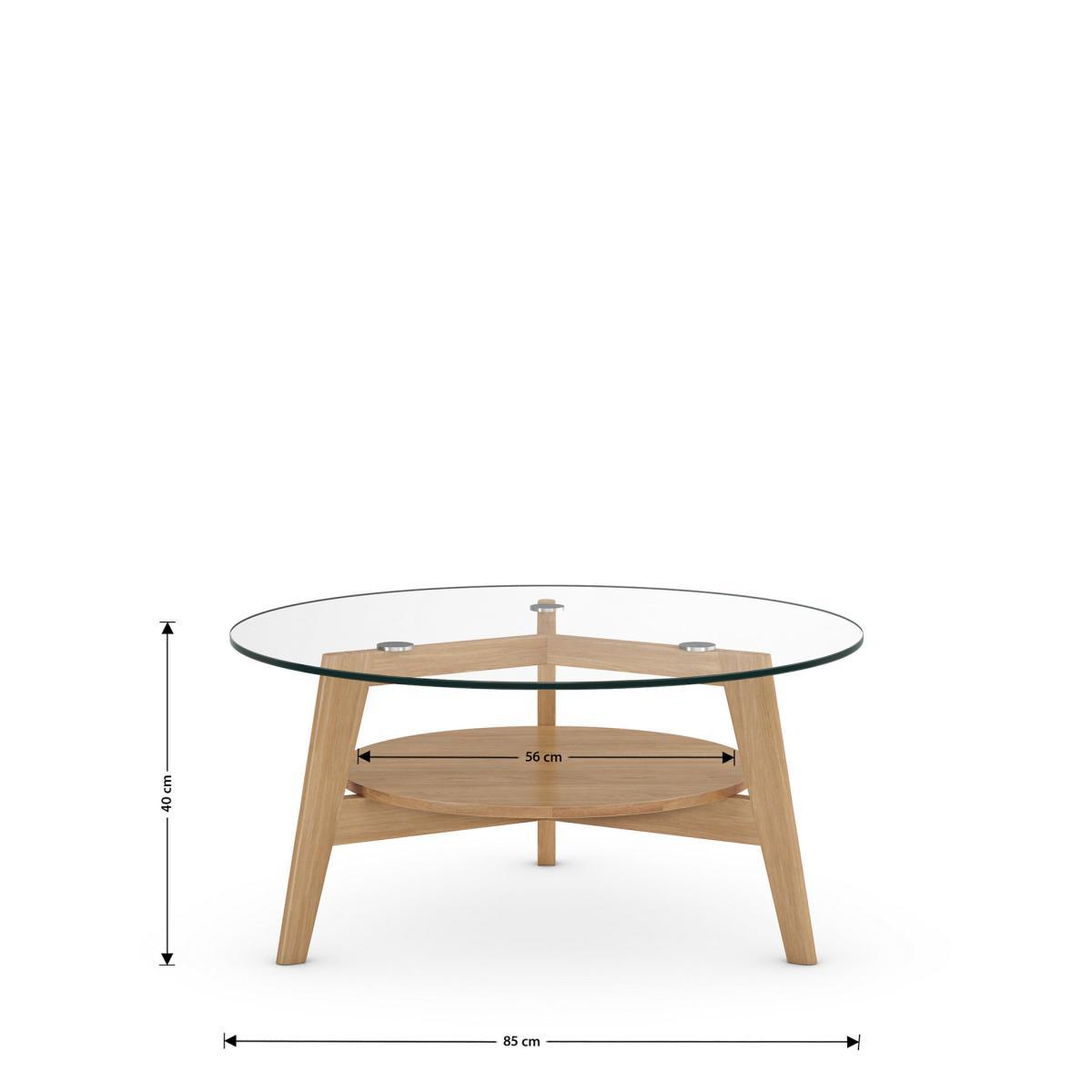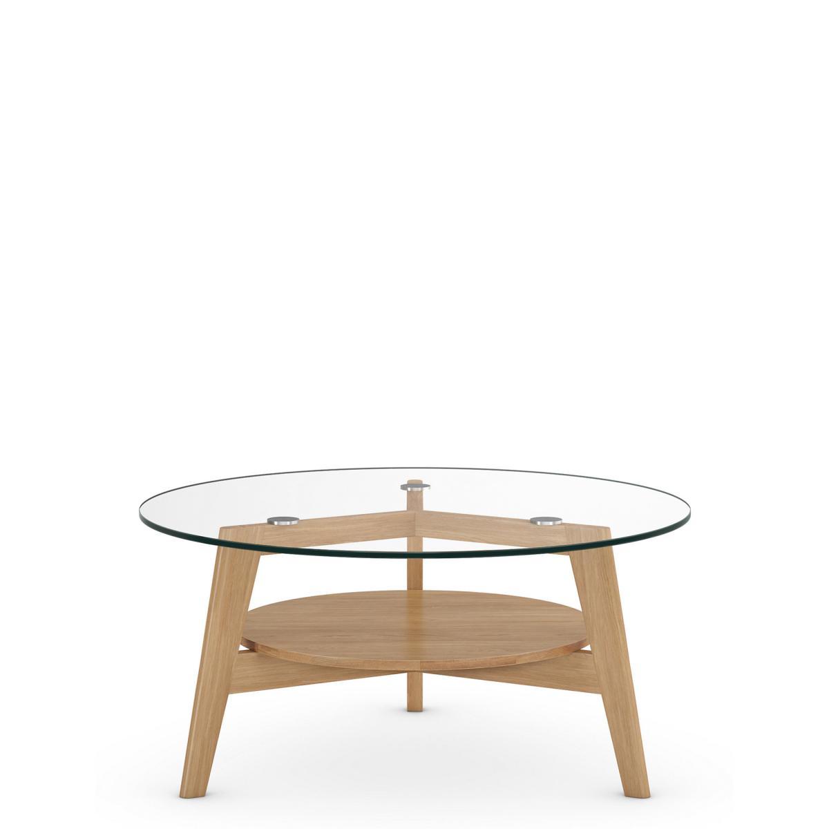 This contemporary Nord coffee table is crafted from a beautiful oak with a stylish glass top. Designed in a round shape, it provides a soft feature for living rooms. A handy storage shelf sits underneath to help keep your space tidy. Discover matching pieces in the rest of our Nord range.