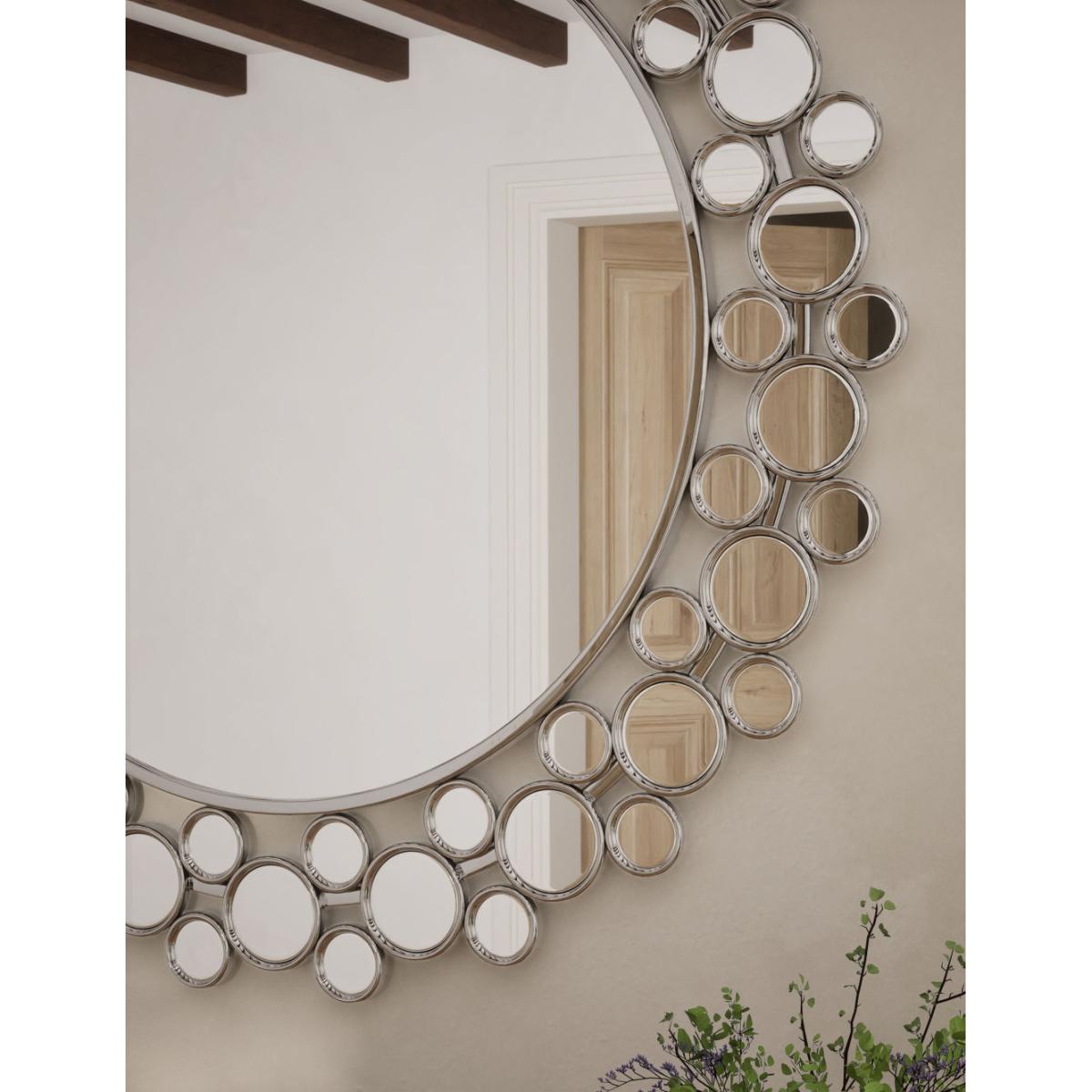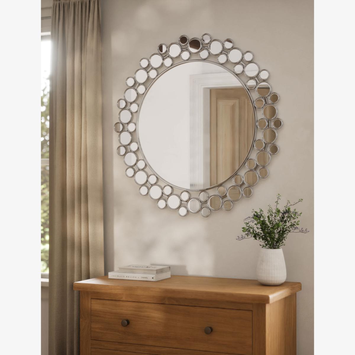 Add a playful touch to your interior decor with the Octavia wall mirror. It's made in a traditional round shape, with a metal frame composed of mirrored discs that capture and refract the light.