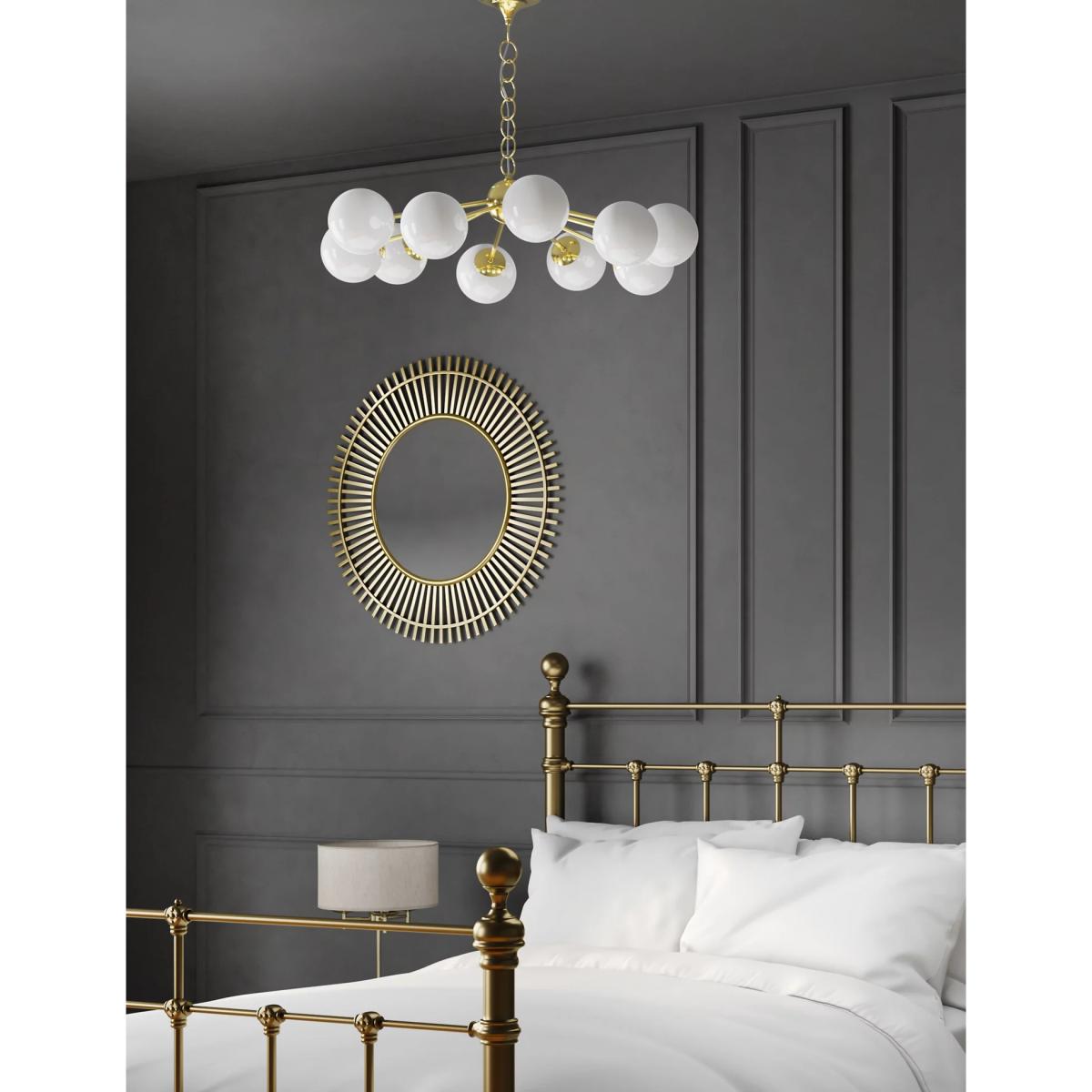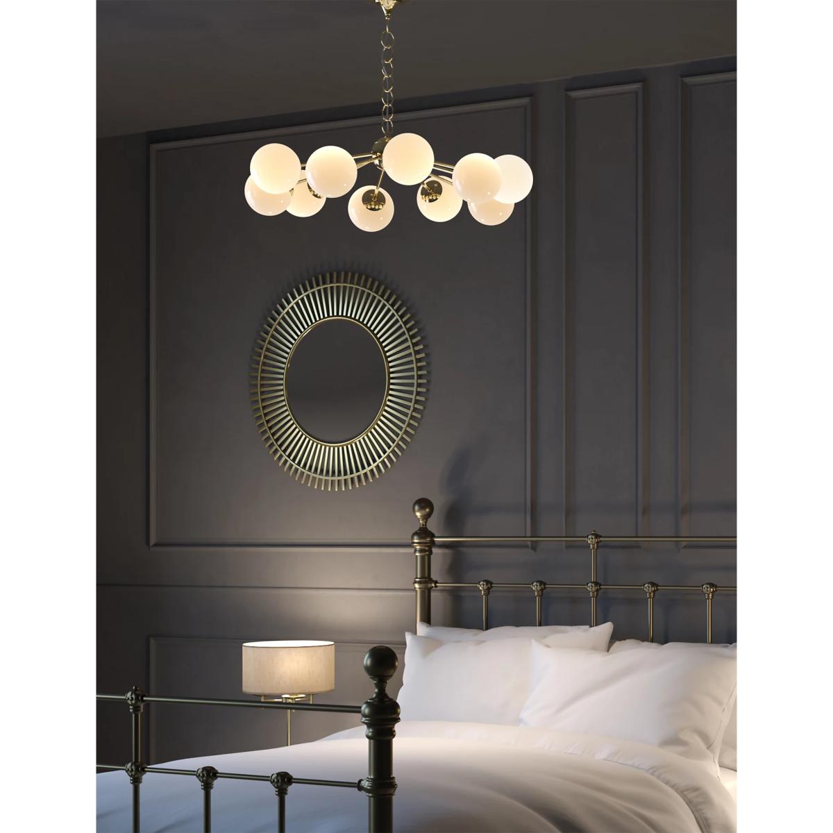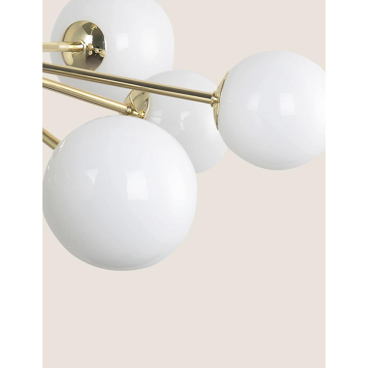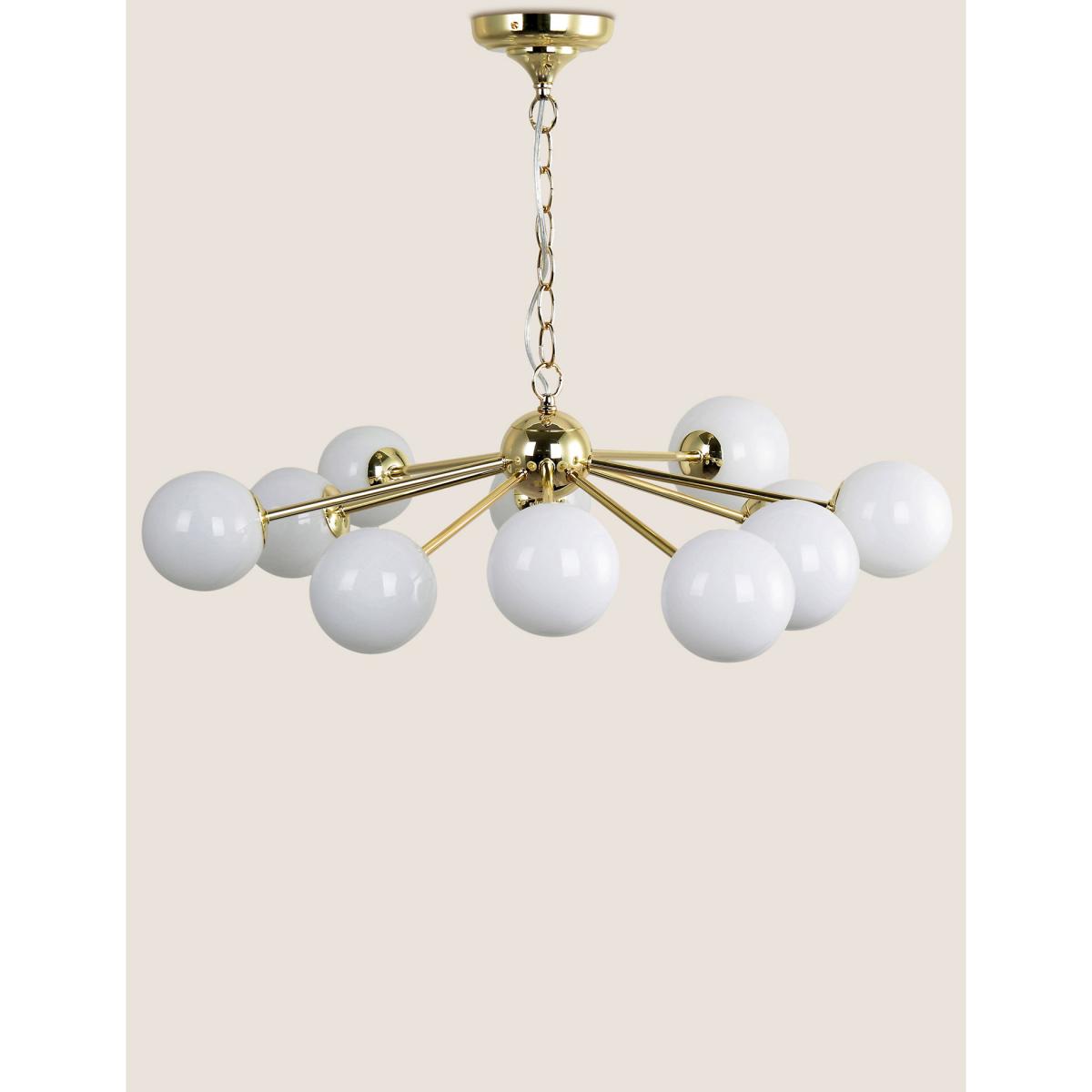 I love this opal globe chandelier for its modern yet timeless appeal. Its clean white bulbs paired with a polished gold finish make it versatile enough to work in a variety of interiors, from contemporary spaces to more classic, elegant rooms. It works particularly well in living rooms, dining areas, or even in a chic home office, where it can act as a statement piece without overwhelming the space. Practical styling tips include pairing it with minimalist furniture and neutral palettes to really let the fixture stand out, or contrasting it with darker tones for a bold, striking look. Its shape and colour make it a versatile option for adding a fresh, sophisticated touch to your ceiling lighting.