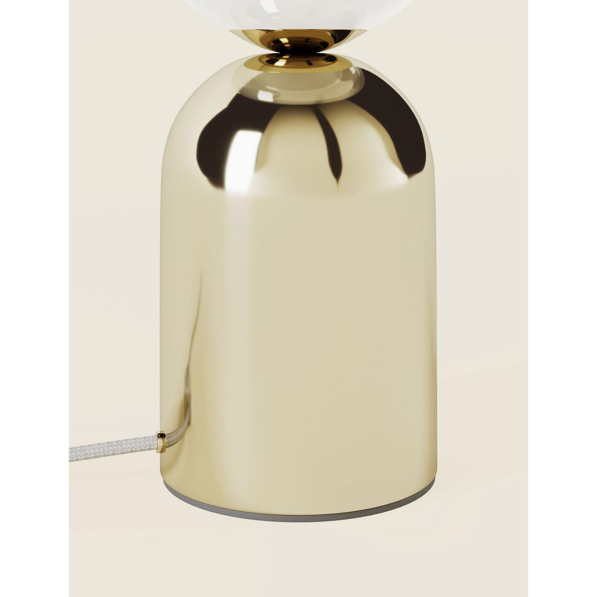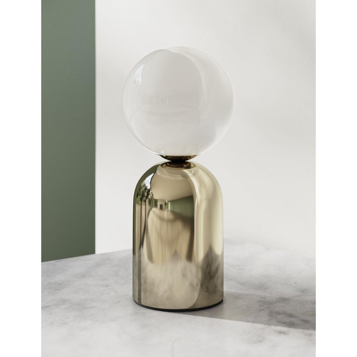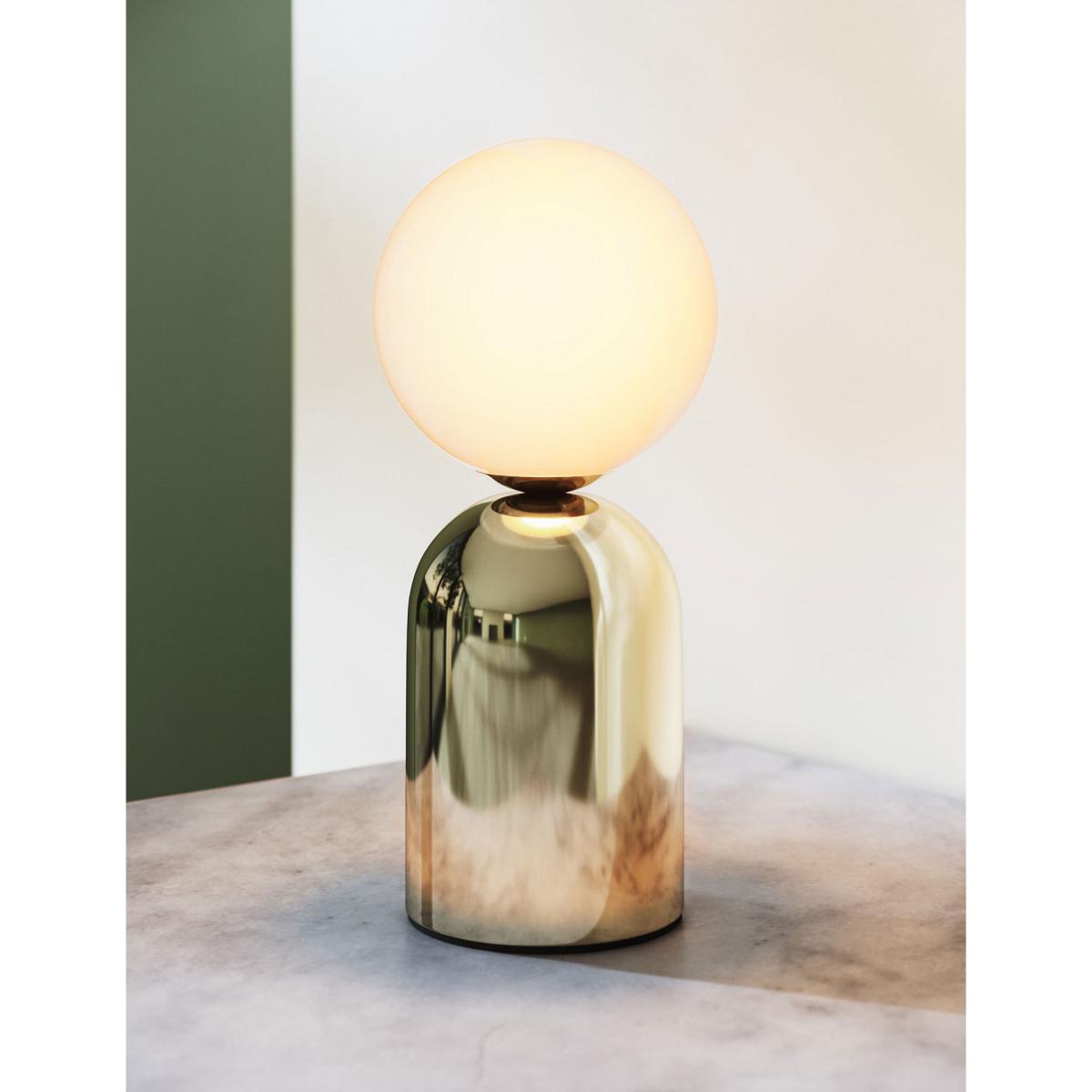Style meets functionality with this sculptural light. Its opal globe light creates an ambient glow that softly illuminates your room. The light is complete with a polished brass base for a luxurious look.