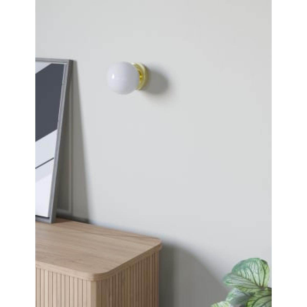 Bring a warm glow to your space with this opal globe wall light. This sleek glass shade is ideal for brightening up living spaces and bathrooms alike.