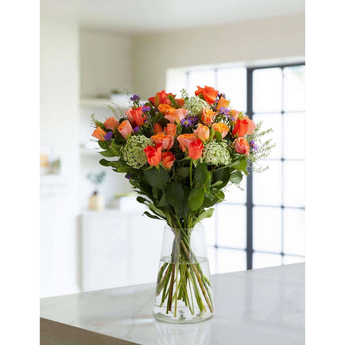 I really like the bright, cheerful vibe of this flower bundle - it’s a great way to add colour without the upkeep of real blooms. The orange crush offers a bold pop of colour that works particularly well in contemporary or minimalist interiors, providing warmth and vibrancy without clutter. It’s versatile enough to sit on a kitchen counter, as centrepiece on a dining table, or in a living room nook. For styling tips, try pairing it with neutral or monochrome backgrounds to really make the colour stand out, or group it with other greenery and softer tones for a fresh, layered look. Since they’re artificial, it’s ideal for spaces with limited natural light or for those who want a durable, always-present floral splash.