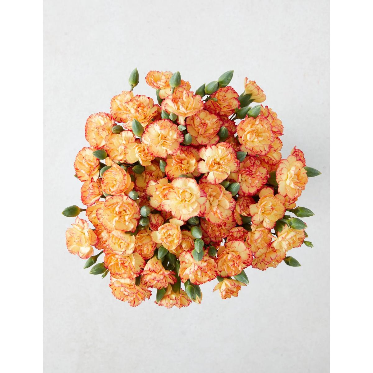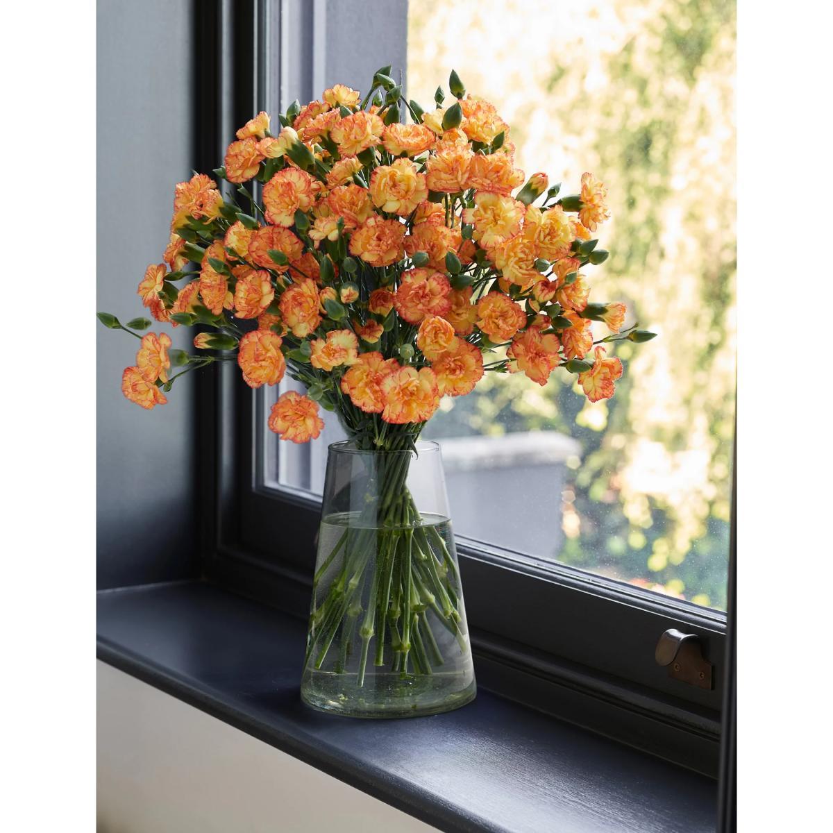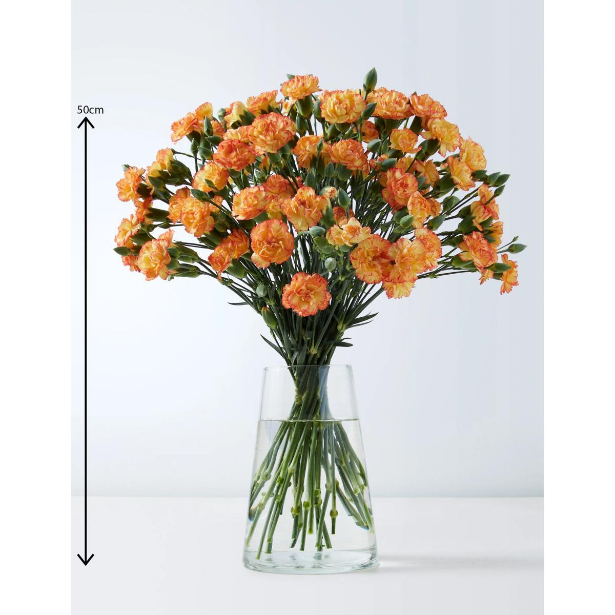 I love this bright orange spray carnation for its vibrancy and structured appearance, which adds a lively touch to both contemporary and traditional interiors. It works particularly well in kitchens, living rooms, or entryways where a pop of colour can lift the space. To style it effectively, I’d suggest pairing it with sleek, minimalistic vessels or placing it in a clear glass vase like in the photo to highlight its cheerful hue. Since it’s artificial, it’s low maintenance and perfect for spaces with little natural light or areas where real flowers might be hard to keep fresh. A tip would be to occasionally rotate it with other colours or additional stems to keep the display looking fresh and intentional.