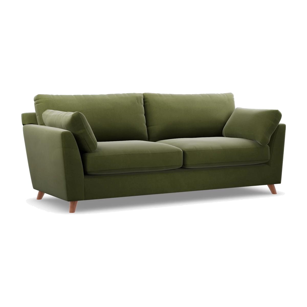 I love this sofa for its clean lines and versatile appeal. It works particularly well in contemporary or minimalist interiors, but its simple design also allows it to blend seamlessly into more eclectic schemes when styled creatively. The olive-green colour is a fantastic choice, offering a pop of colour without overwhelming the space. Practical styling tips include pairing it with textured cushions and throws in complementary shades for added comfort, or contrasting it with neutral accessories for a sleek look. Its size makes it ideal for open-plan living areas or medium-sized rooms, providing a comfortable seating option without dominating the space.