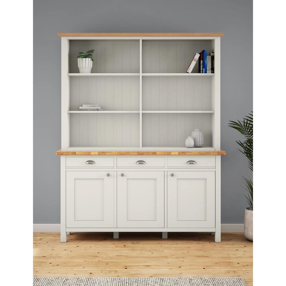 I love the M&S Padstow 3 Door Dresser Top for its versatile and timeless design, making it a great addition to both traditional and contemporary interiors. Its neutral ivory colour makes it easy to pair with a variety of colour schemes and decor styles, from coastal to rustic. It works well as a focal point in dining rooms or kitchens, providing ample display space for crockery, plants, or decorative items on the open shelves, while the enclosed storage beneath helps keep clutter out of sight. Practical styling tips include using the top to showcase statement dishes or vessels, and adding organisers inside the cupboards for maximum efficiency. This piece not only adds charm but also provides functional storage in style.
