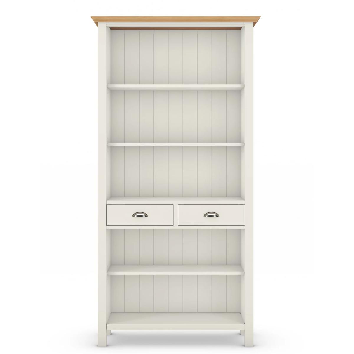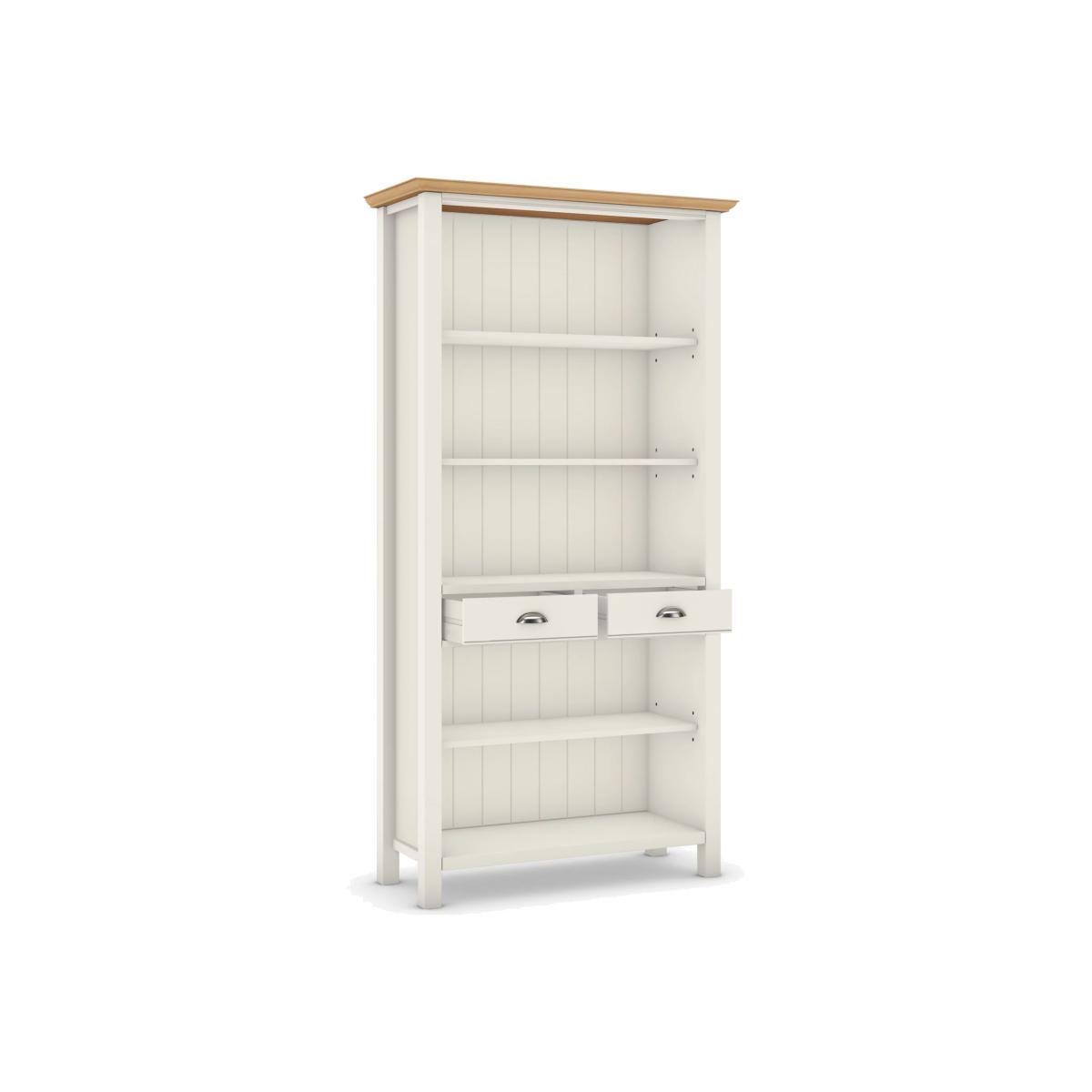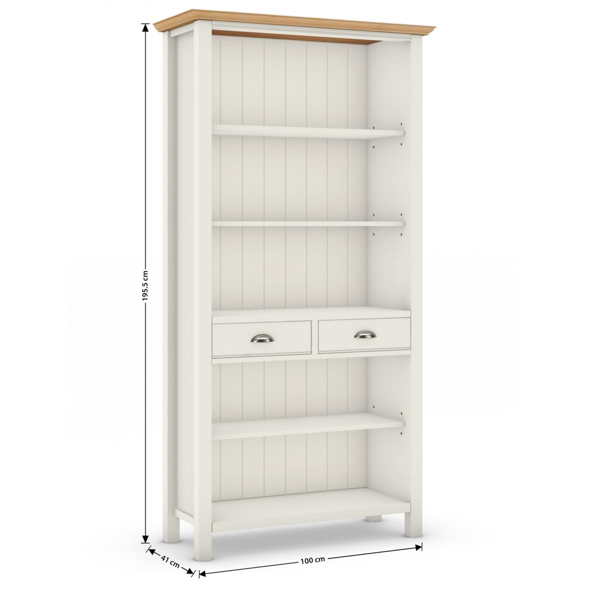 Introduce a rural aesthetic to your home with this superbly crafted Padstow bookcase. Clean-lined and contemporary, it's fitted with plenty of shelves to store your favourite books and two handy drawers for keeping knick-knacks in. Designed in a neutral ivory hue with a complementary natural oak veneer top, it's ideal for any setting. A protective low-sheen lacquer gives this piece a durable finish. Find coordinating designs in the Padstow range. We’re so confident our furniture is built to last, our industry-leading guarantee covers any manufacturing failure on all furniture. That’s our promise, and why our furniture comes with a 10-year guarantee that you can trust. Excludes: outdoor furniture and any issues that are a result of normal wear and tear, improper care or accidental damage.