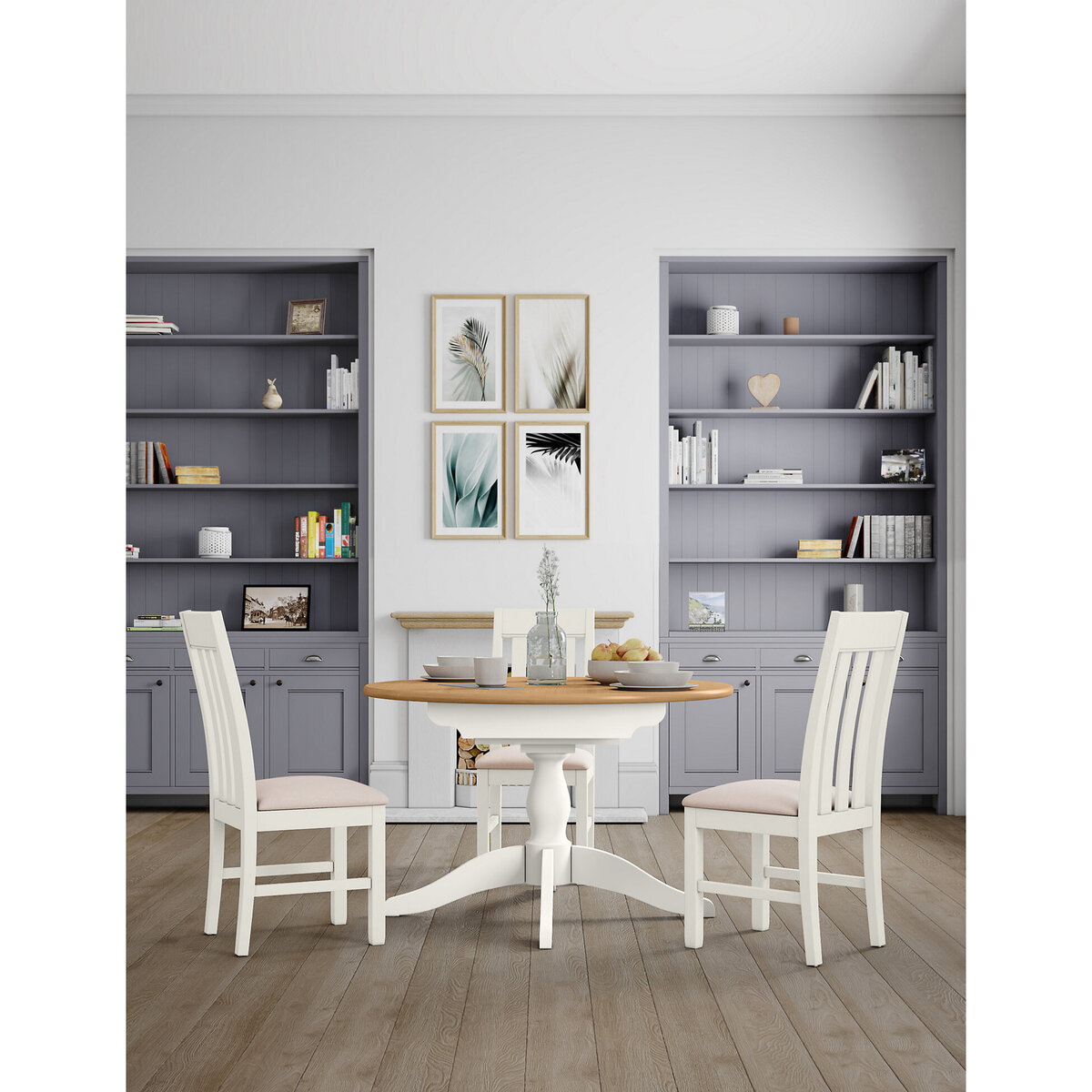 The round shape of the Padstow table makes it perfect for creating a convivial, family-friendly dining space, encouraging conversation and making it suitable for both casual and formal settings. Its ivory tone offers a versatile neutral that pairs well with various colour schemes, from soft pastels to bold accents. I love styling it with a simple runner or placemats to highlight its natural wood top and add texture. In smaller spaces, the extendable feature is a real asset, providing flexibility for larger gatherings without sacrificing style when not in use. This table works well in coastal, Scandi, or cottage-inspired interiors thanks to its clean lines and light finish, and it’s easy to dress up with statement centrepieces or layered tableware for a more refined look.