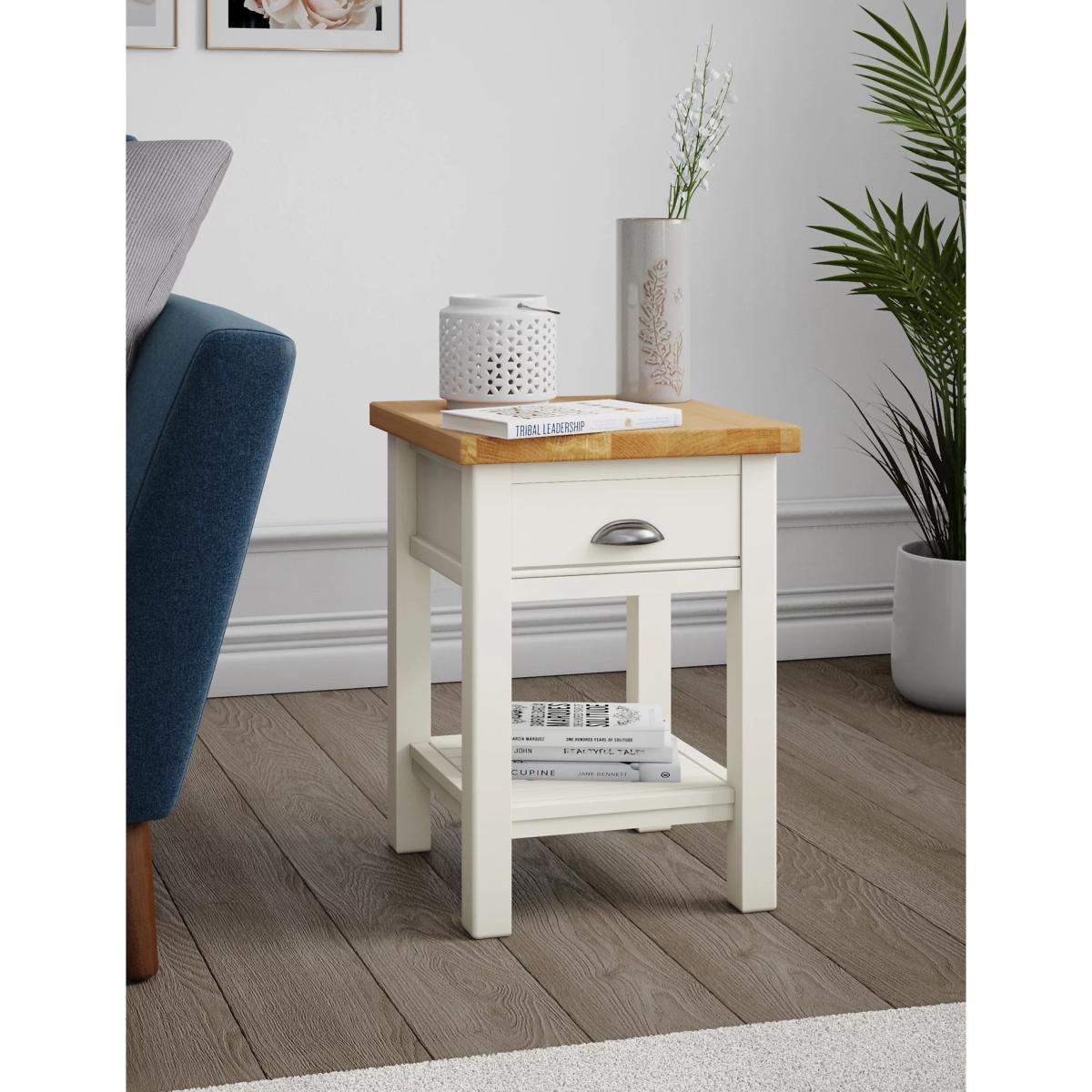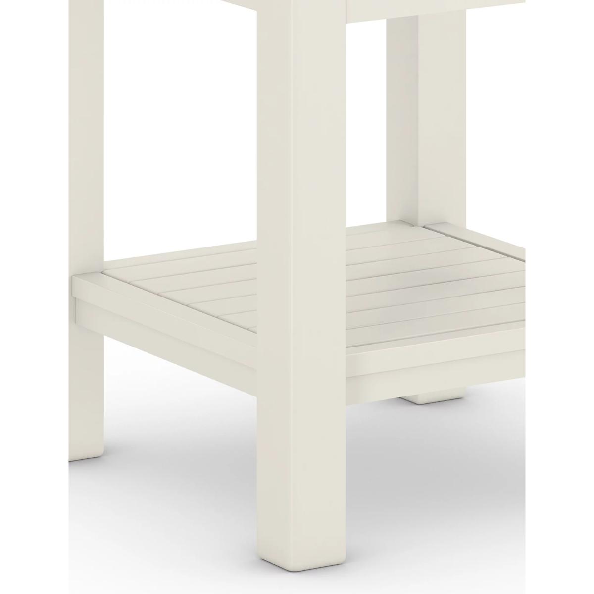 I love this little side table for its versatility and neutral tone, making it easy to incorporate into various interiors. Its ivory finish adds a soft, fresh touch, perfect for coastal, Scandi, or modern country schemes. It works well beside beds, sofas, or armchairs, providing practical storage on the lower shelf and a neat surface on top. For styling, try pairing it with textured ceramics, small potted plants, or a simple lamp to keep the look understated yet functional. Its compact size also makes it ideal for cosy corners or bedrooms where space is limited, adding character without overwhelming the room.