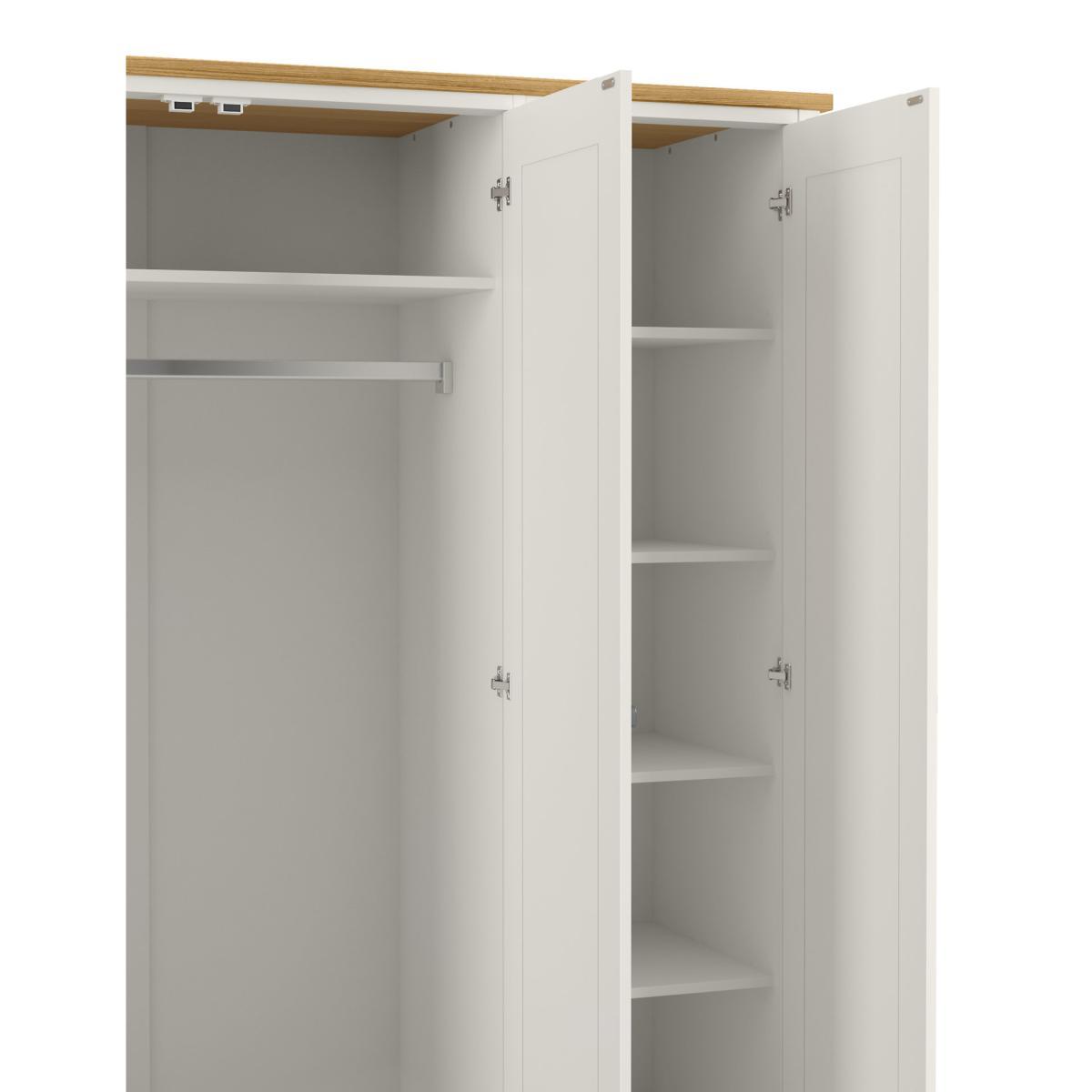 This three-door wardrobe from the Padstow range has plenty of room to store your clothing tidily while adding a classic note to your interior. The space inside features a rail and wide top shelf, as well as a separate side section with adjustable internal shelves that you can customise to your requirements. Underneath is one wide and one narrow drawer on durable wooden runners.