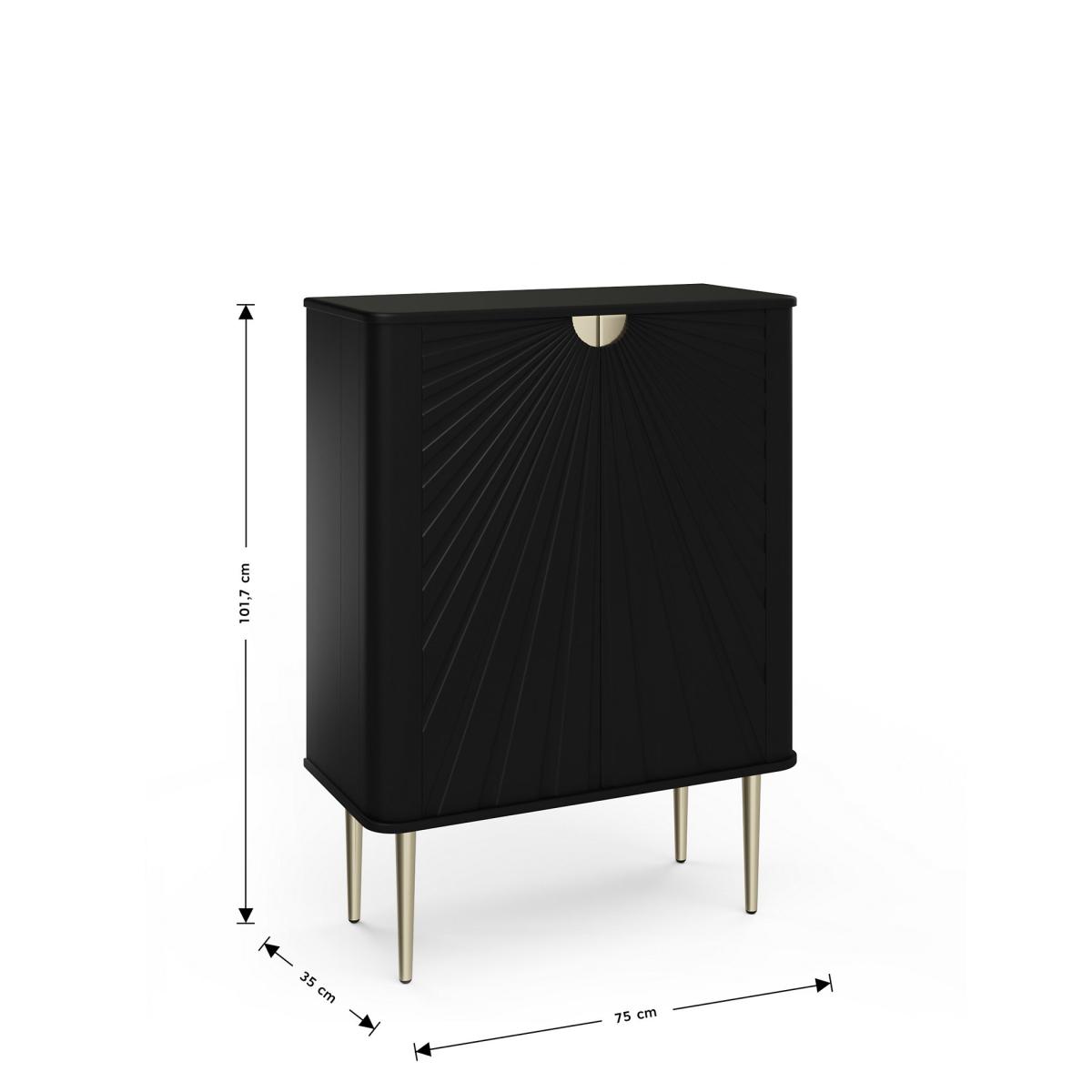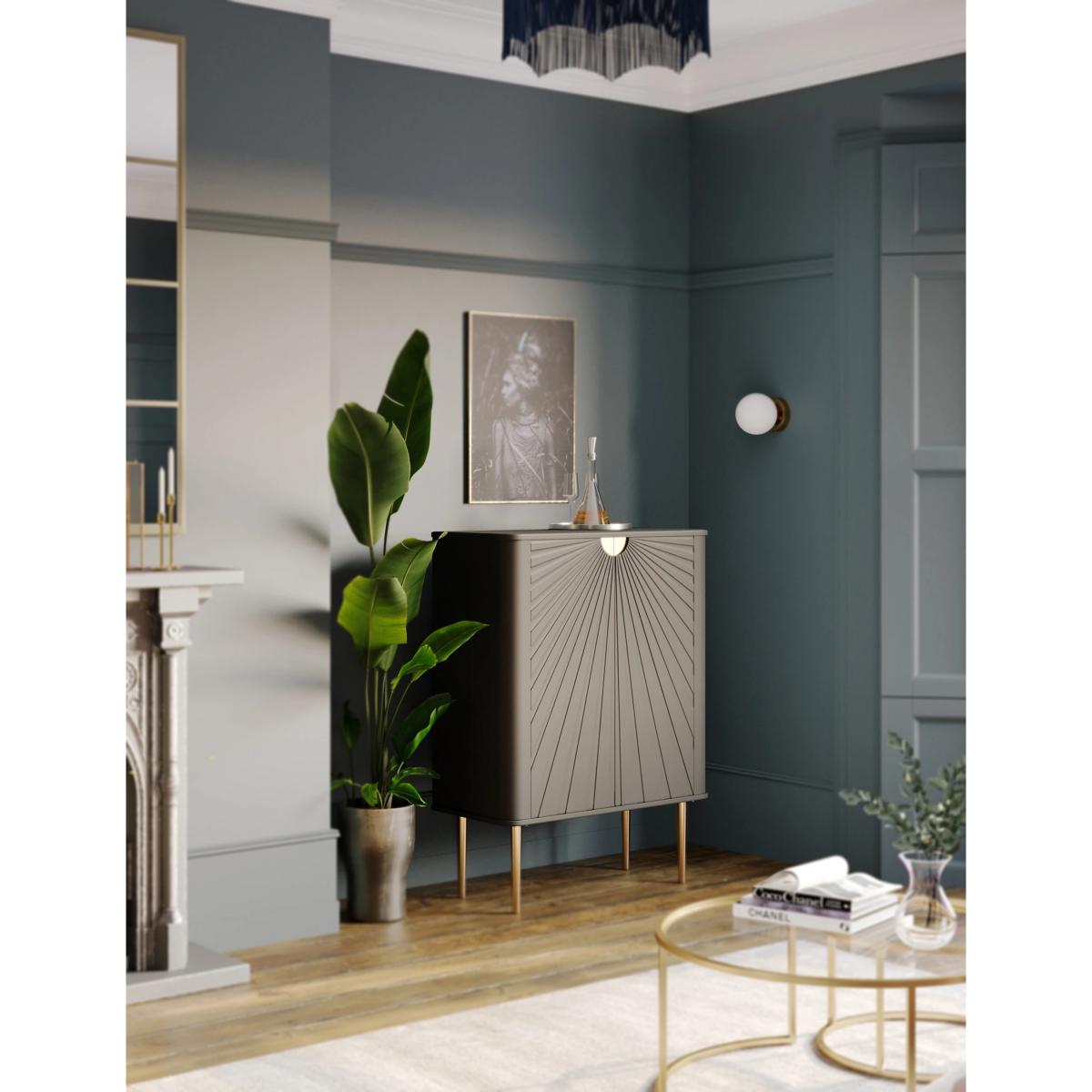 Give your drinks collection an elegant new home with this Palmer cabinet. It has a wood-effect finish with a vintage-inspired starburst design on the front doors, adding a sophisticated feel to any interior. Brushed brass-effect accents and feet add to the stylish look. Inside there is plenty of storage, including shelves on the doors so you can keep your favourite wines and spirits neat and organised. We’re so confident our furniture is built to last, our industry-leading guarantee covers any manufacturing failure on all furniture. That’s our promise, and why our furniture comes with a 10-year guarantee that you can trust. Excludes: outdoor furniture and any issues that are a result of normal wear and tear, improper care or accidental damage.