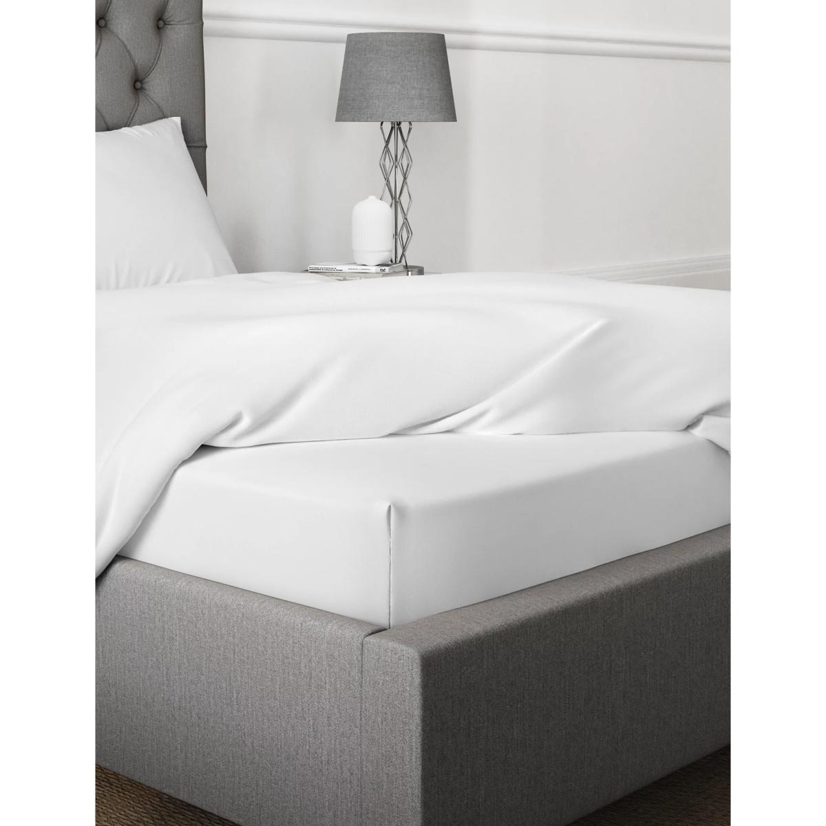 M&S Percale 300 Thread Count Deep Fitted Sheet - 6FT - Light Grey, White,Light Grey