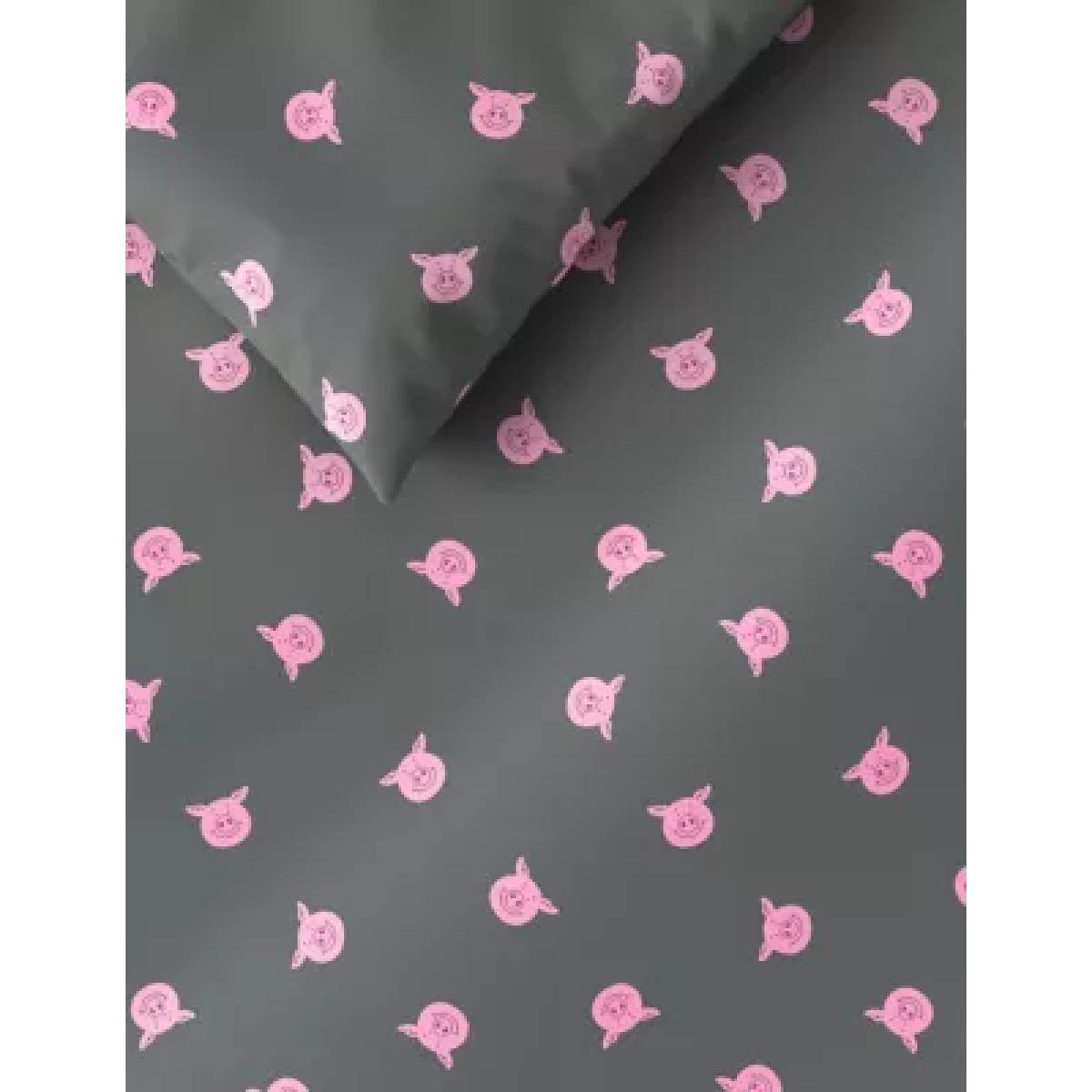 M&S Percy Pig™ Cotton Mix Percy Repeat Bedding Set - 5FT - Grey Mix, Grey Mix