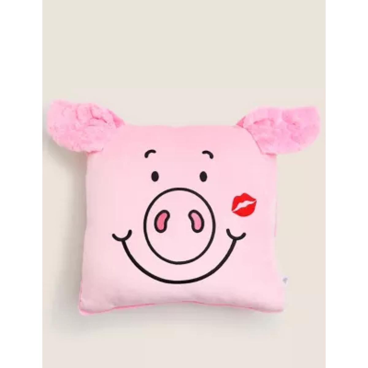 I love the fun, playful vibe the pig cushion adds, making it ideal for bringing a touch of whimsy to a casual living space or kids’ room. Its soft pink colour and cheeky face make it a versatile piece that pairs well with pastel palettes or adds a pop of colour to neutrals. To style it effectively, try swapping out a standard cushion on a sofa or armchair for something more quirky-pair it with other soft textiles or even a faux-fur throw for cosy yet playful looks. It’s also a great choice for Valentine’s day displays or adding a sweet accent in a guest bedroom. Keep it as a statement piece or mix with other colourful cushions to create a layered, inviting feel.