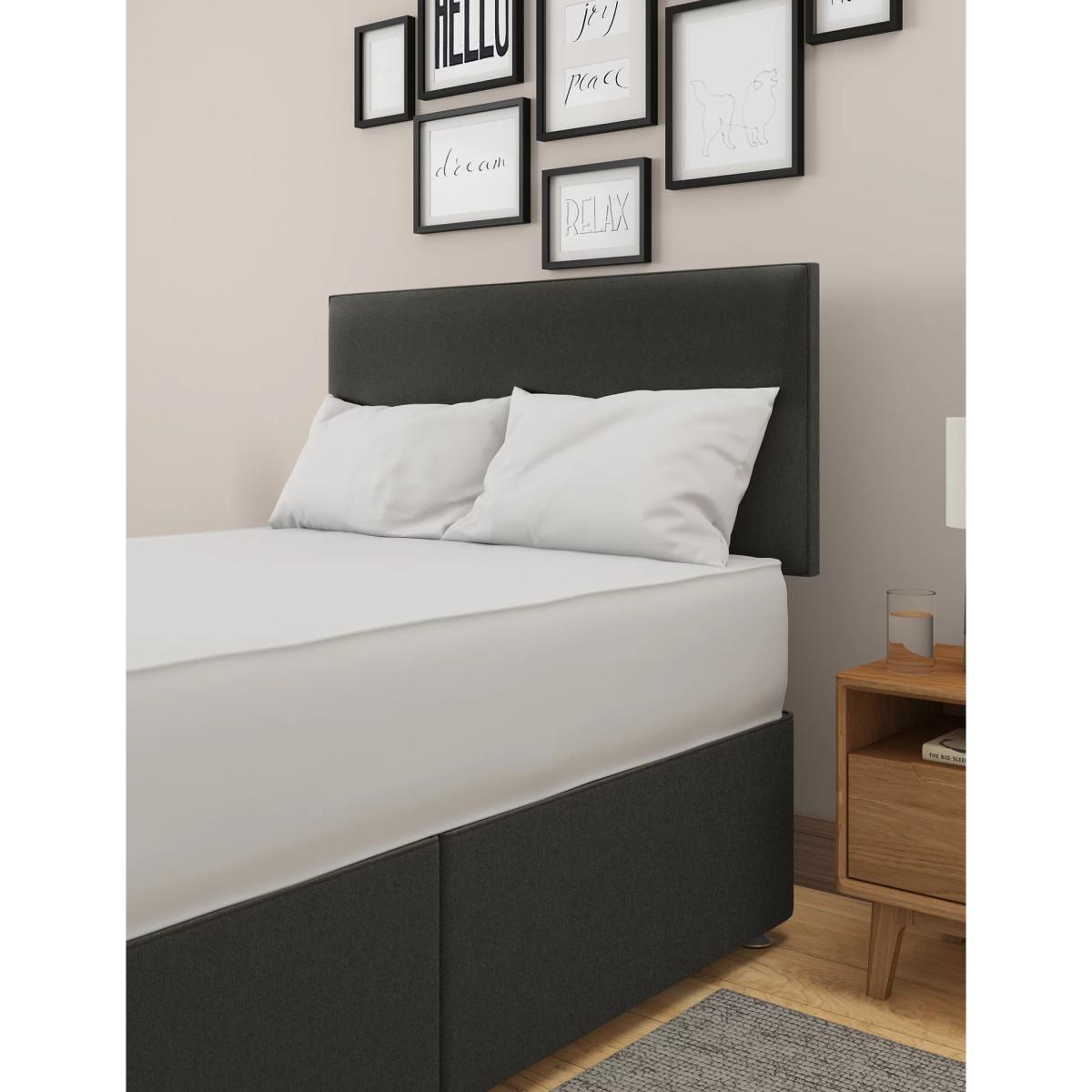 This stylish divan, mattress and headboard set will reinvigorate any bedroom. The headboard features clean lines in a simple, contemporary design and is upholstered for a soft padded finish. It complements the comfortable mattress, which uses individually pocketed springs to combine a cushioned feel with a core that's wonderfully supportive for your whole body. The mattress sits on an upholstered divan base, made from high-quality timber for durability and sustainability. This set is available in two colours.