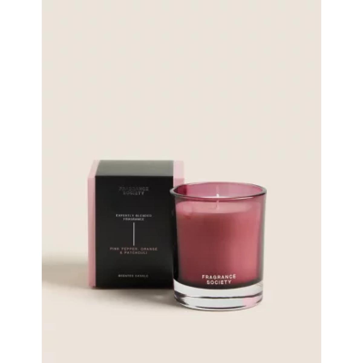 Add a little zest to your day with this pink pepper and patchouli candle from our Fragrance Society range. With floral notes combined with fresh scents of orange, lemon and ginger, this wax concoction will enliven your mood.