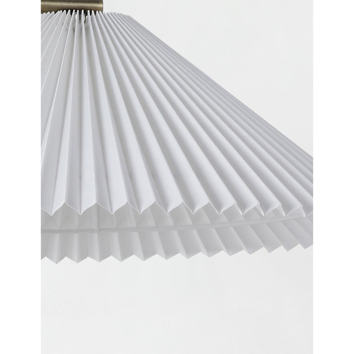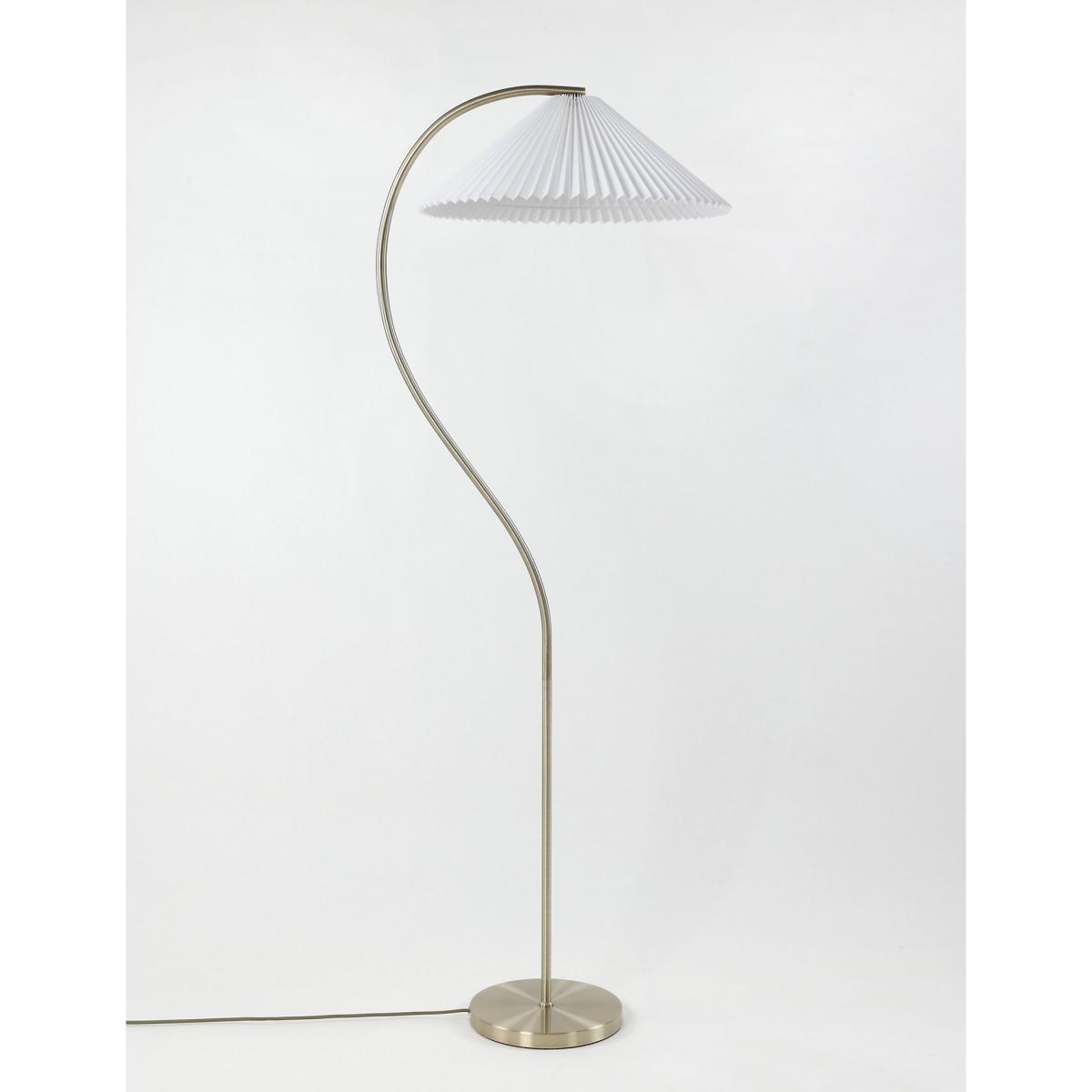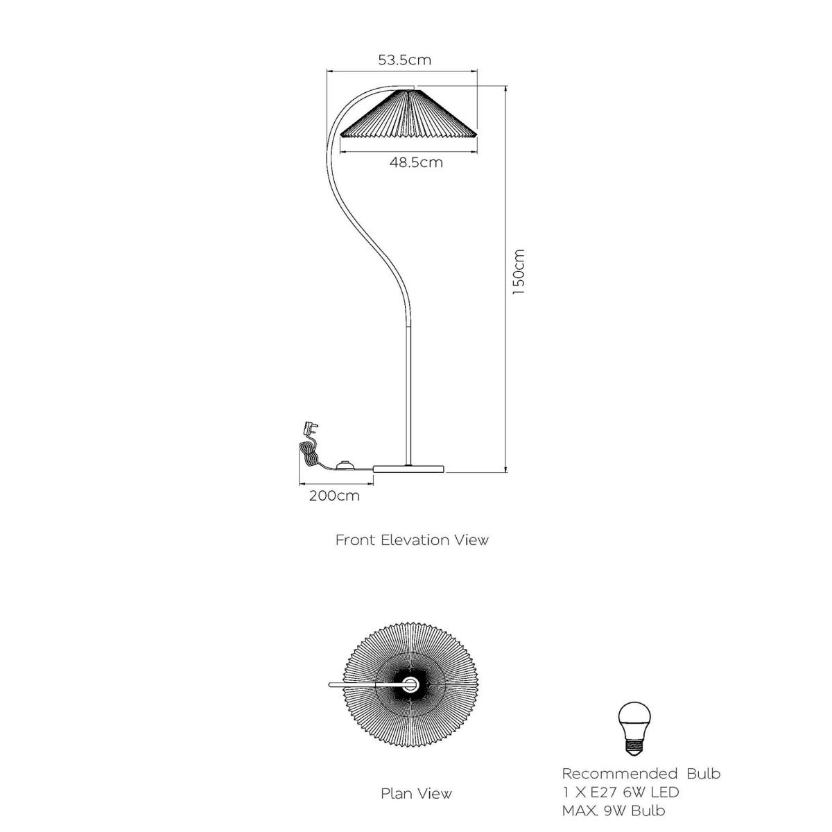 Enhance the mood of your interiors with this medium-sized floor lamp. It features a slender metal arm and a conical shade crafted from pleated fabric for a standout look.
