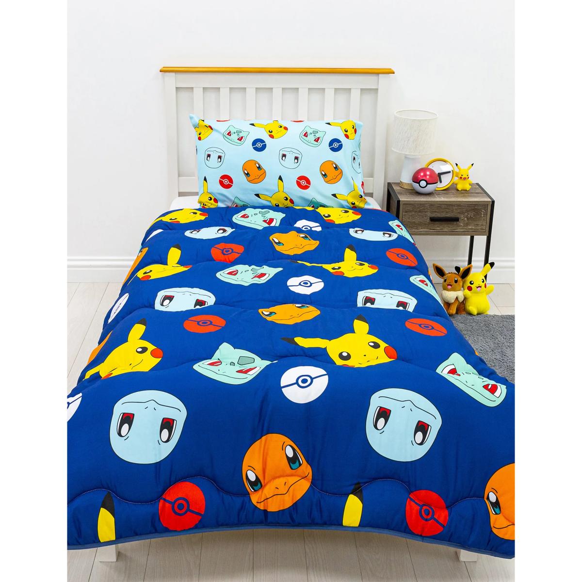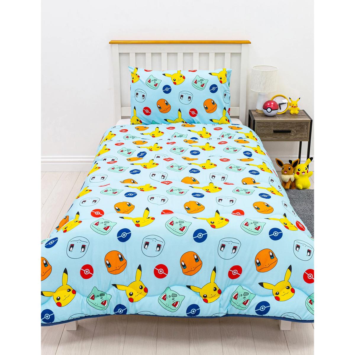Kids can catch 'em all with this Pokemon™ single duvet & pillowcase set. The cosy 10.5 tog duvet is made in a coverless design, so there's no need for a separate duvet cover. It's quick to wash and dry, making it easy to look after. Each side of the duvet and pillowcase features a colourful print, featuring all of their favourite Pokemon™ characters.