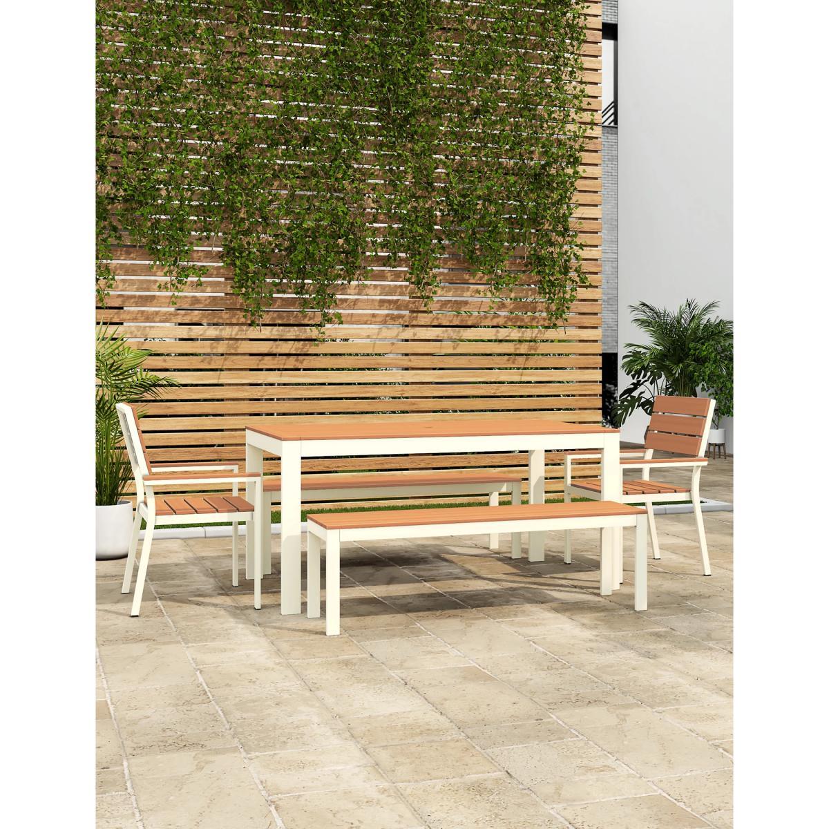 M&S Porto 6 Seater Dining Table with Benches - White Mix, White Mix
