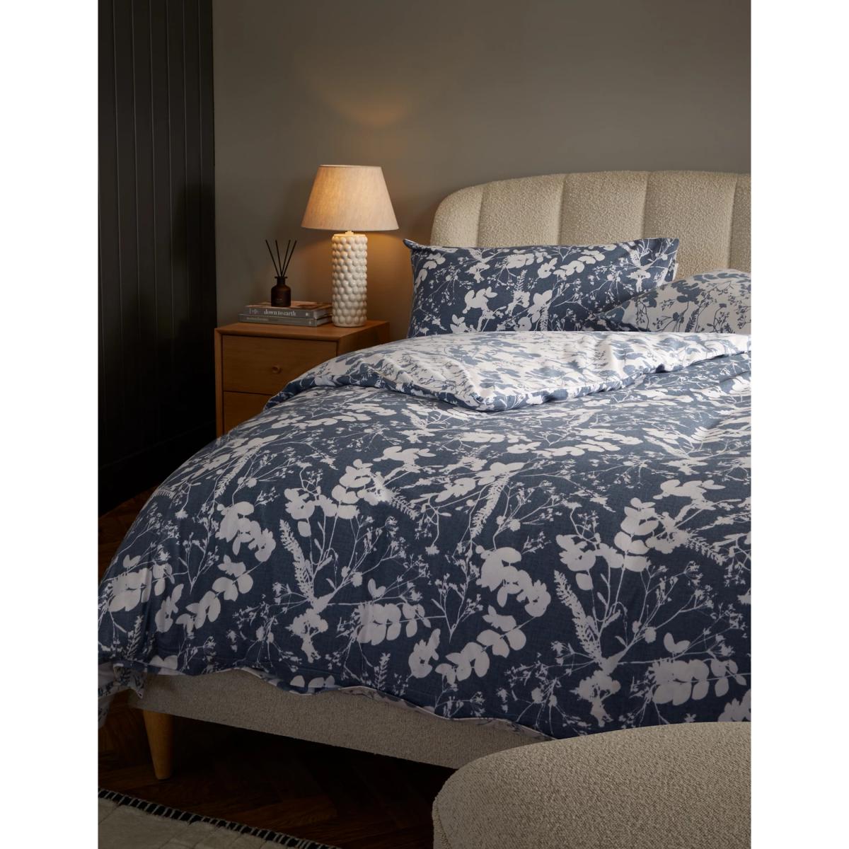 M&S Pure Brushed Cotton Autumn Leaves Bedding Set - SGL - Slate Blue, Slate Blue