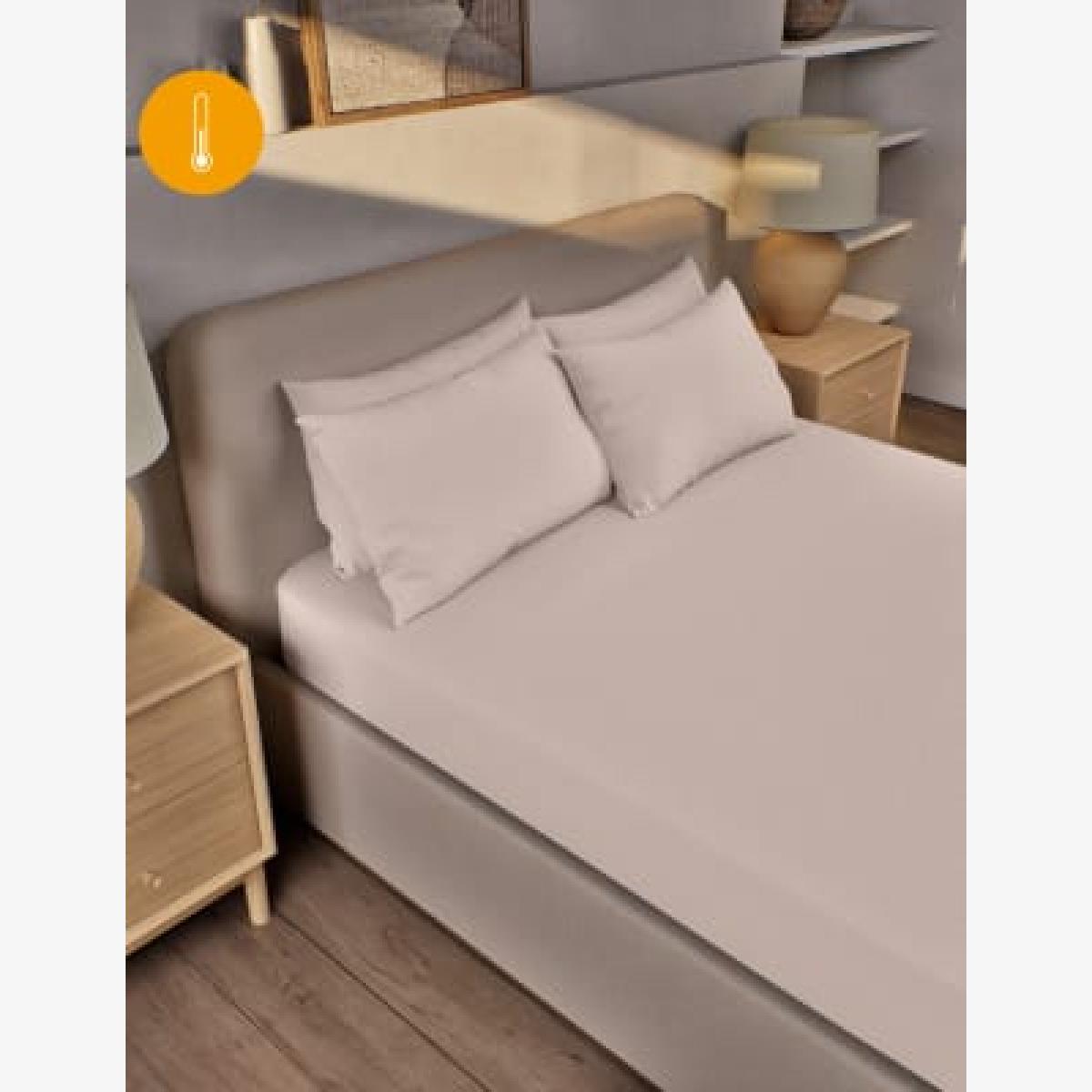 Made from soft and cosy brushed pure cotton, this deep fitted sheet offers ultimate comfort. The elasticated corners will hold the sheet in place over your mattress. Our special thermal technology protects against heat loss and heat gain to help regulate your temperature. Matching items are available. Suitable for mattresses up to 30cm deep.