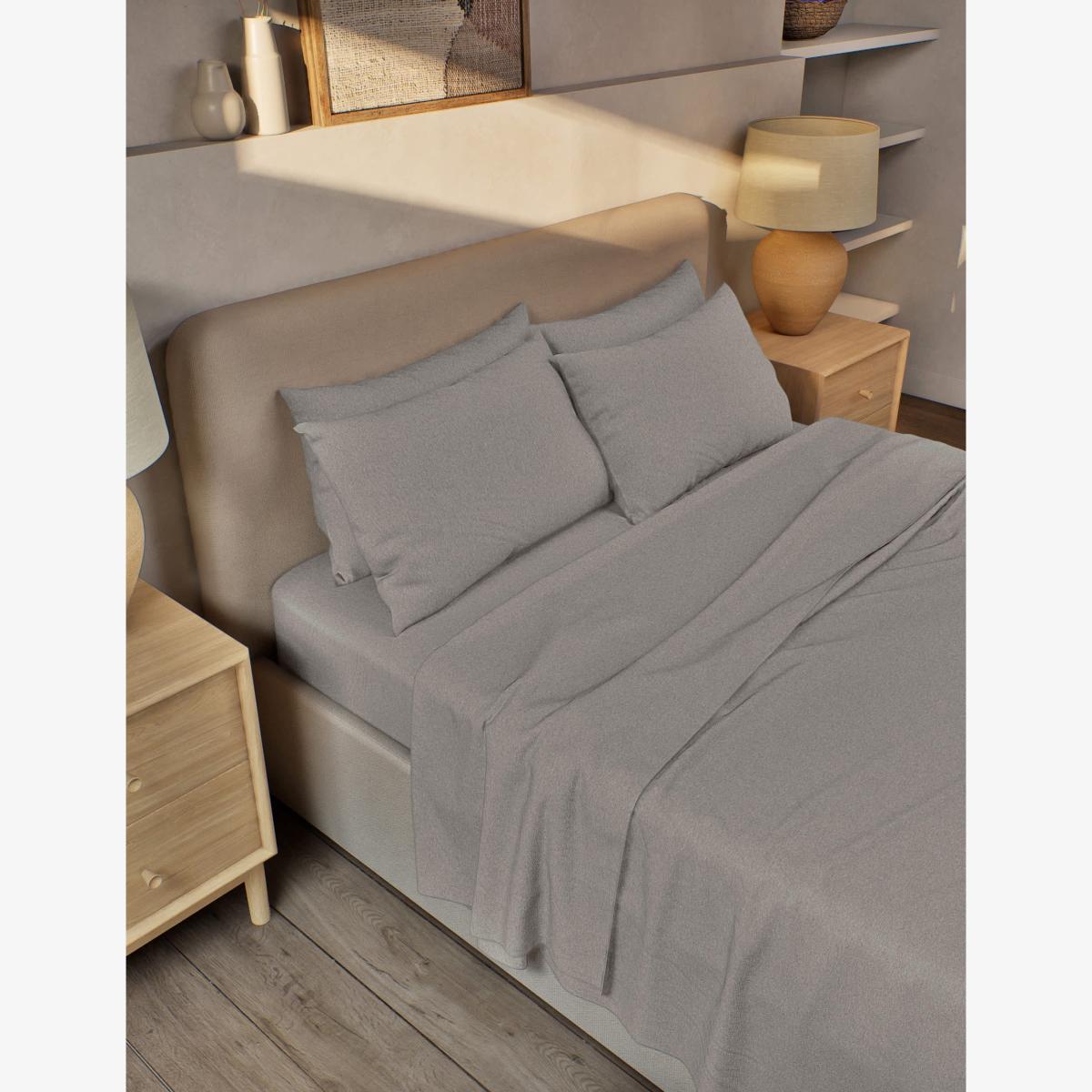 I really like this brushed cotton sheet for its versatility and understated style. Its neutral colours, especially grey marl and biscuit, work well in modern, minimalist, or Scandinavian interiors, adding a cozy yet refined touch. The brushed cotton fabric is perfect for colder months, offering a soft, breathable feel that looks effortlessly chic. For styling, I’d suggest pairing it with textured throws or tactile cushions in complementary shades to create a layered, inviting look. It’s also a great base for adding pops of colour or pattern through bedding accessories, making it adaptable whether your room leans more towards calm neutrals or a pop of colour like forest green or duck egg for a subtle colour injection. Practical and stylish, this sheet is an easy way to elevate the bed’s overall look without fuss.