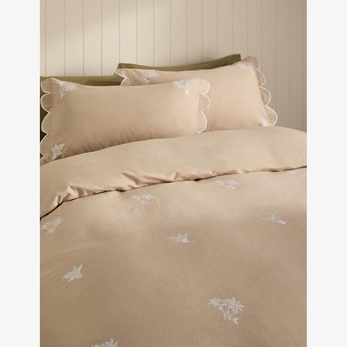 M&S Pure Brushed Cotton Floral Embroidered Scallop Bedding Set Natural