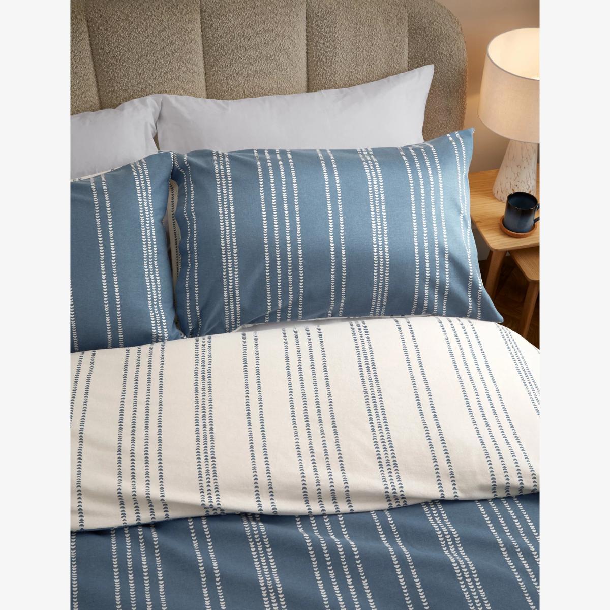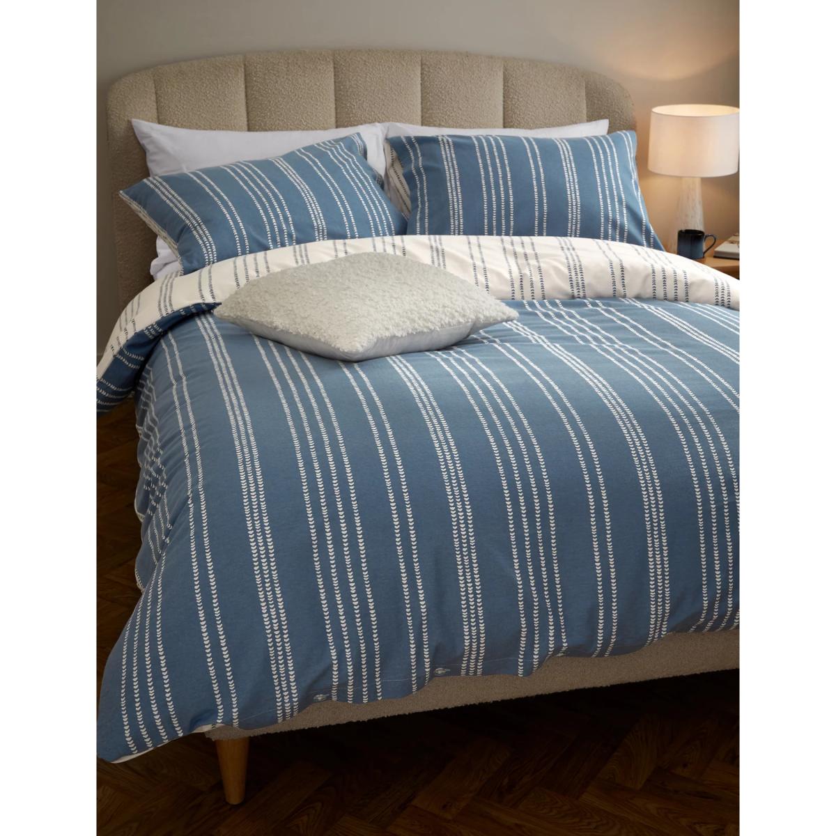 M&S Pure Brushed Cotton Stripe Bedding Set - 5FT - Slate Blue, Slate Blue