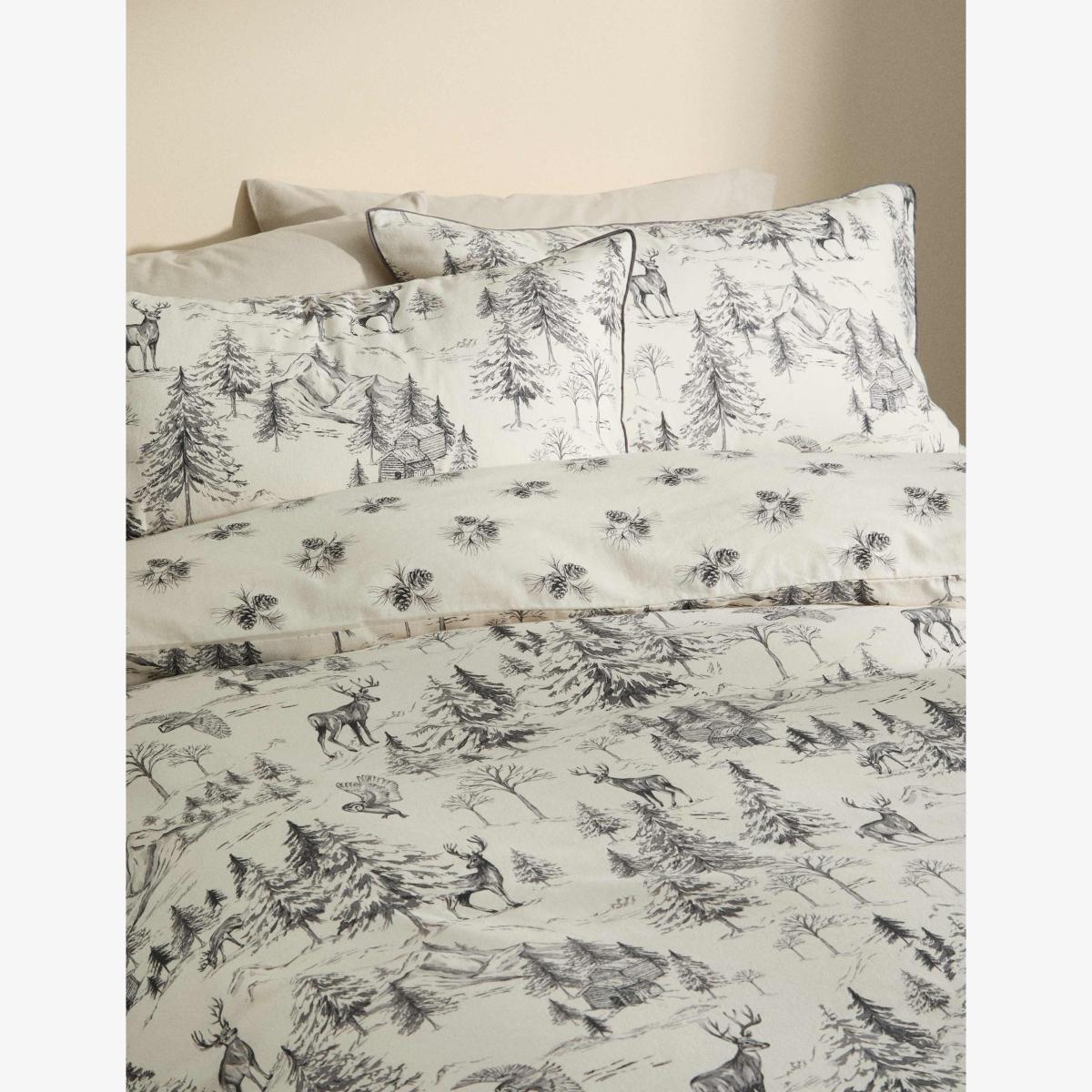 M&S Pure Brushed Cotton Woodland Forest Bedding Set Ecru Mix