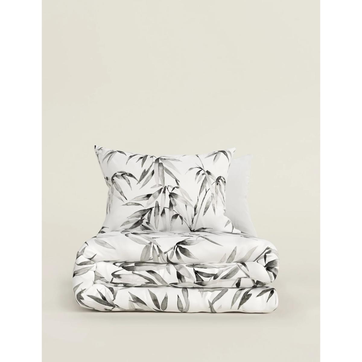 Give your bedroom a botanical touch with this stylish bedding set. It's crafted from pure breathable cotton that feels comfortable against the skin. One side features an artistic bamboo print, while the reverse is finished with solid colour. It has classic button fastening.