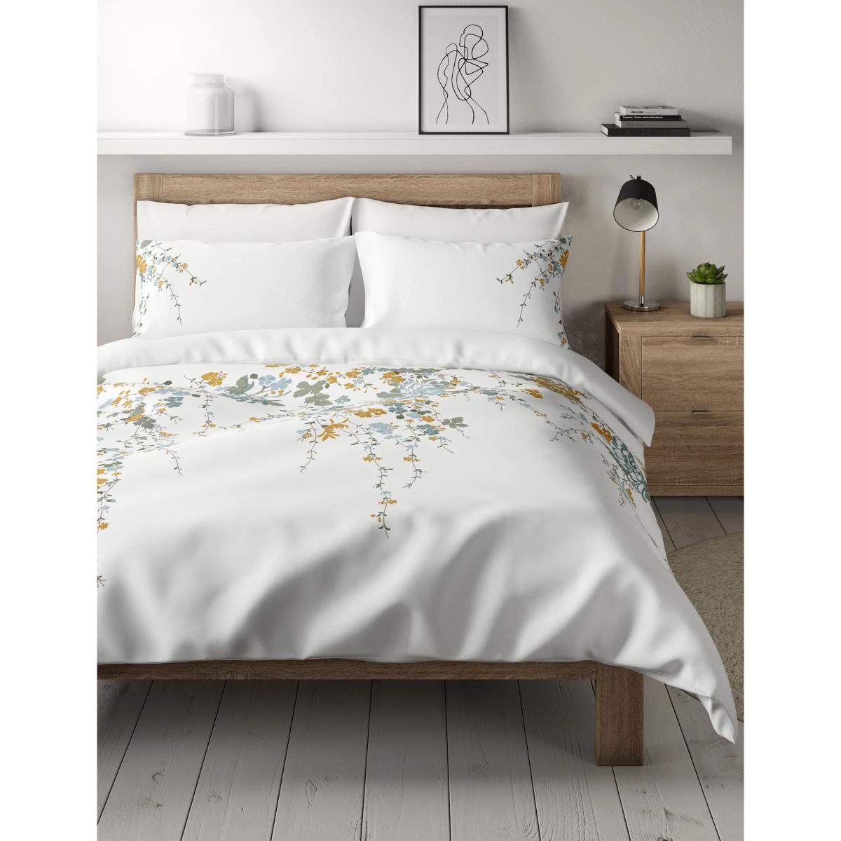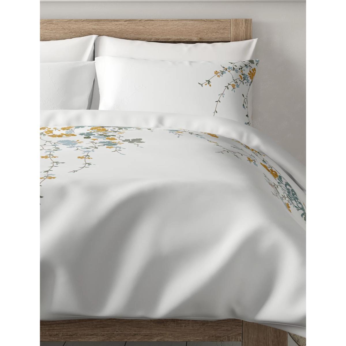 Bring the beautiful outdoors into your bedroom with this pure cotton bedding set. It's embroidered with delicate trailing blossoms. This modern design is soft and breathable, to help you comfortably drift off. We've added Easy Care technology to make it a breeze to look after too.