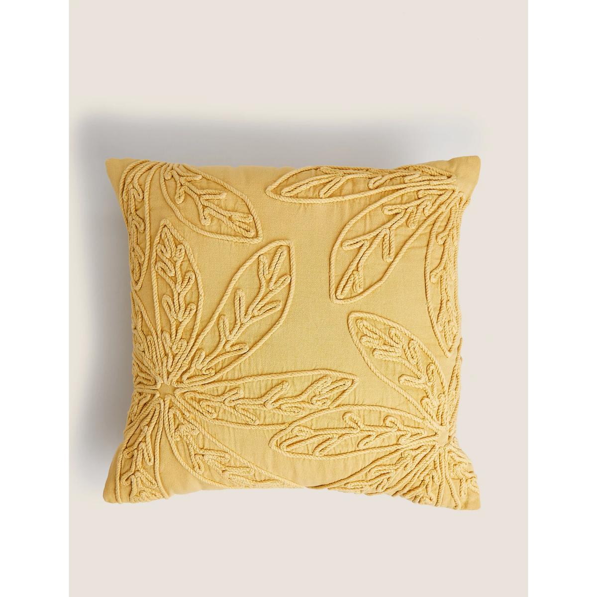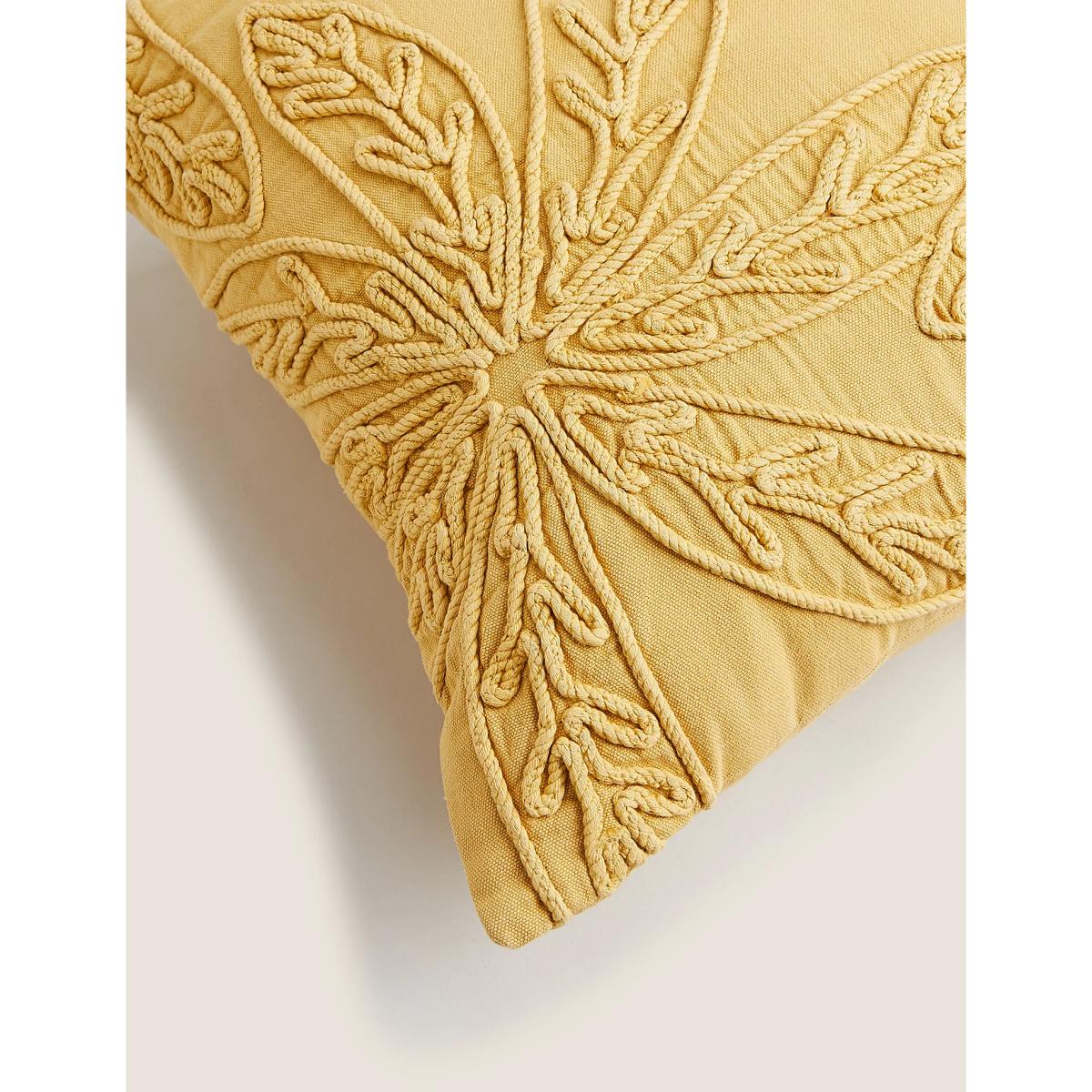 M&S Pure Cotton Floral Embroidered Cushion - Mustard, Mustard