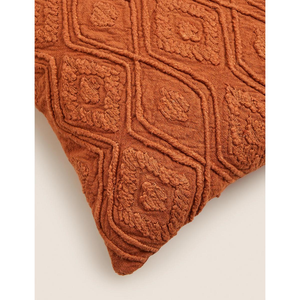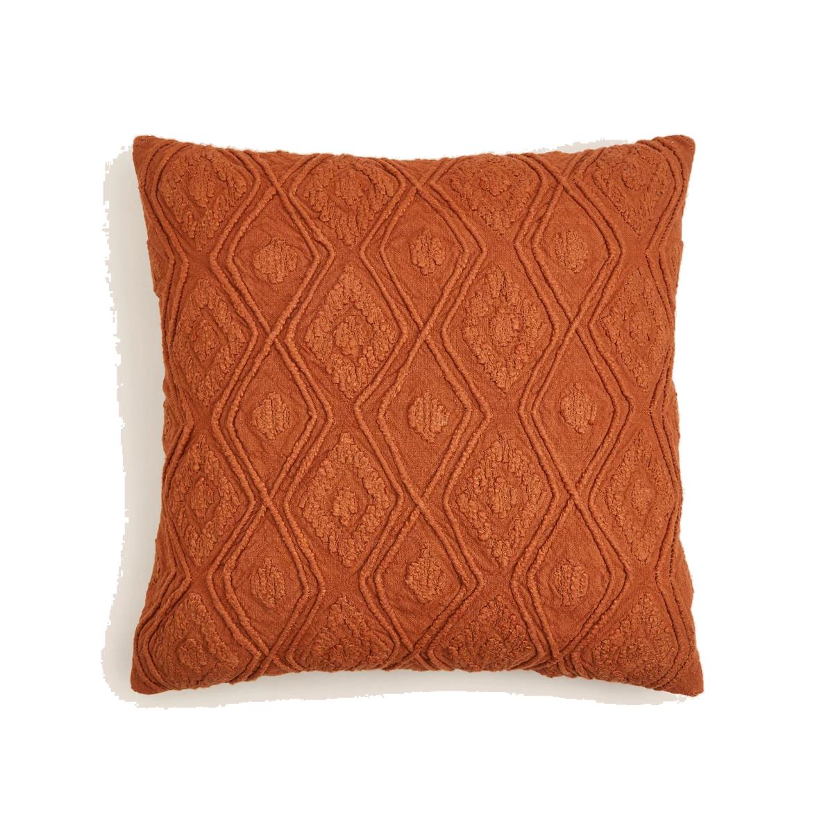 I love this cushion's rich terracotta tone combined with the textured geometric pattern-it offers a lovely tactile element while adding warmth to a variety of schemes. It works particularly well in boho, Scandinavian, or eclectic interiors where layering colours and textures is key. For styling tips, pair it with soft neutrals like greys and beiges for a more understated look, or mix it with other earthy shades such as moss green or deep browns for a more layered, cosy feel. Its versatile size makes it ideal for sofas, accent chairs, or even beds, and it’s great for adding visual interest without overwhelming a space. Overall, this cushion is both practical and stylish, perfect for injecting a touch of colour and texture into your home.