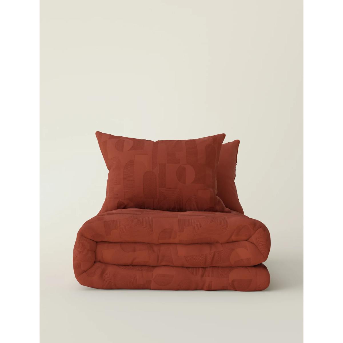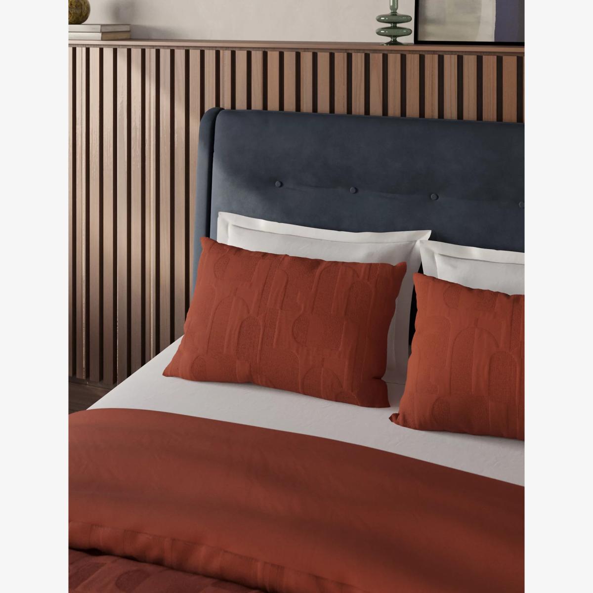 I love the earthy terracotta tone of this duvet set - it's a versatile shade that works beautifully in both modern and traditional interiors. The jacquard cotton adds a subtle texture that enhances the richness of the colour, making it an easy choice for adding warmth to a neutral or monochrome space. It pairs well with natural materials like wood or woven accents, which helps create an inviting, relaxed feel. For practical styling tips, try layering it with crisp white or cream sheets for contrast, and consider adding tactile cushions or throws in complementary hues to elevate the look without overwhelming the tone. With this bedding, you can effortlessly bring a cosy, contemporary touch to your bedroom.