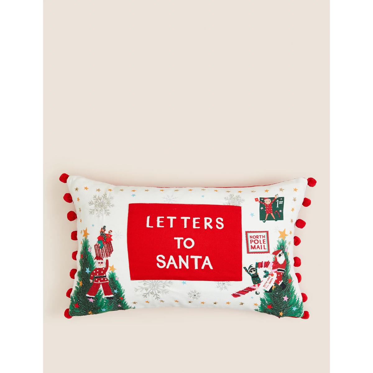 M&S Pure Cotton Letters to Santa Bolster Cushion - Multi, Multi