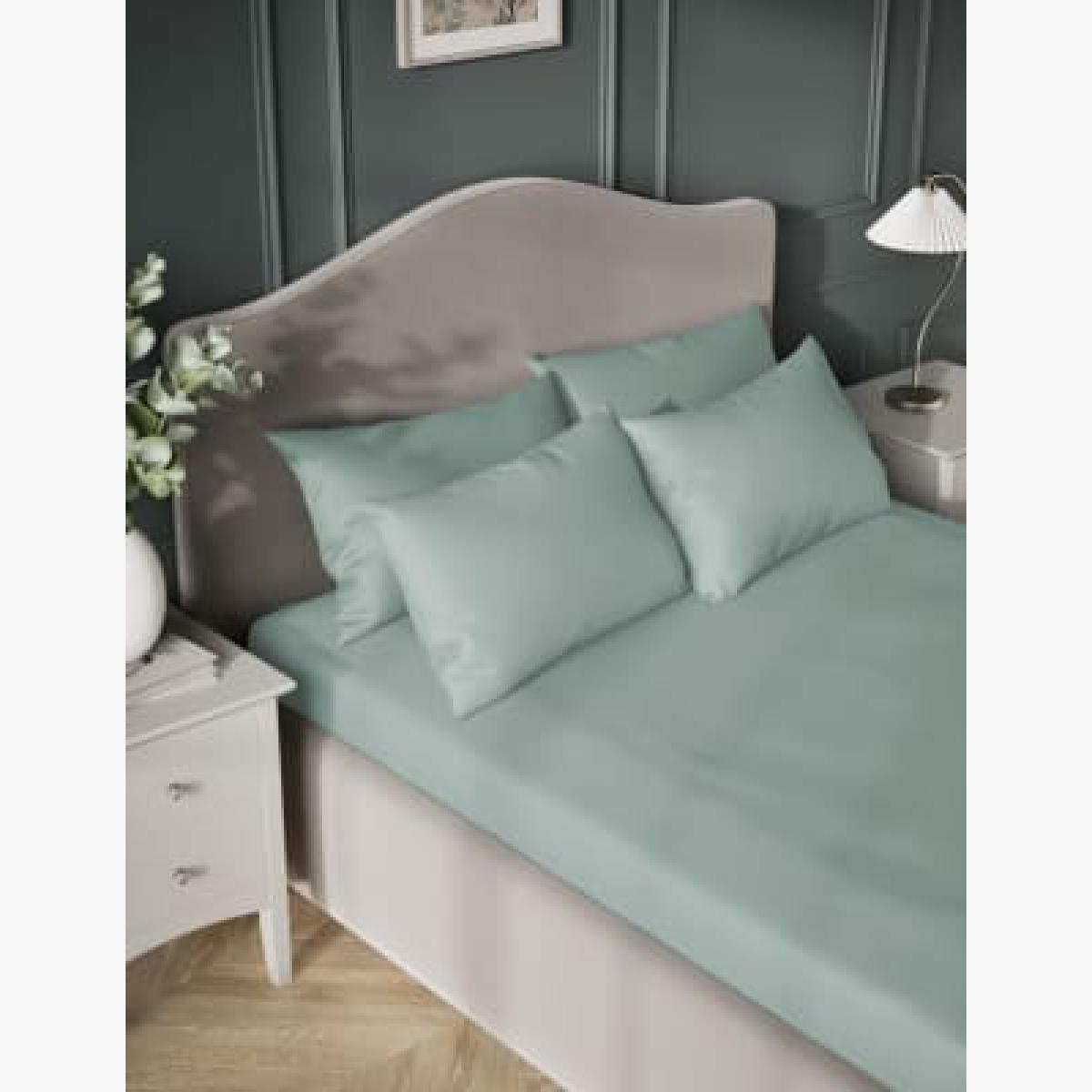 M&S Pure Cotton Sateen 400 Thread Count Flat Sheet - DBL - Sage, Ash Grey,Chambray,Soft Pink,Teal,Sage