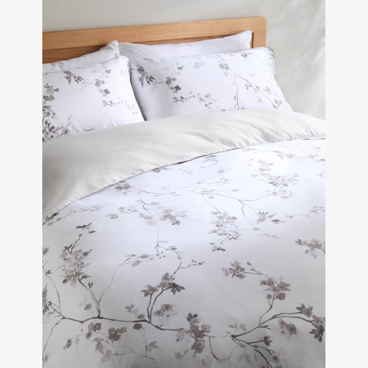 M&S Pure Cotton Sateen Cherry Blossom Bedding Set Grey Mix