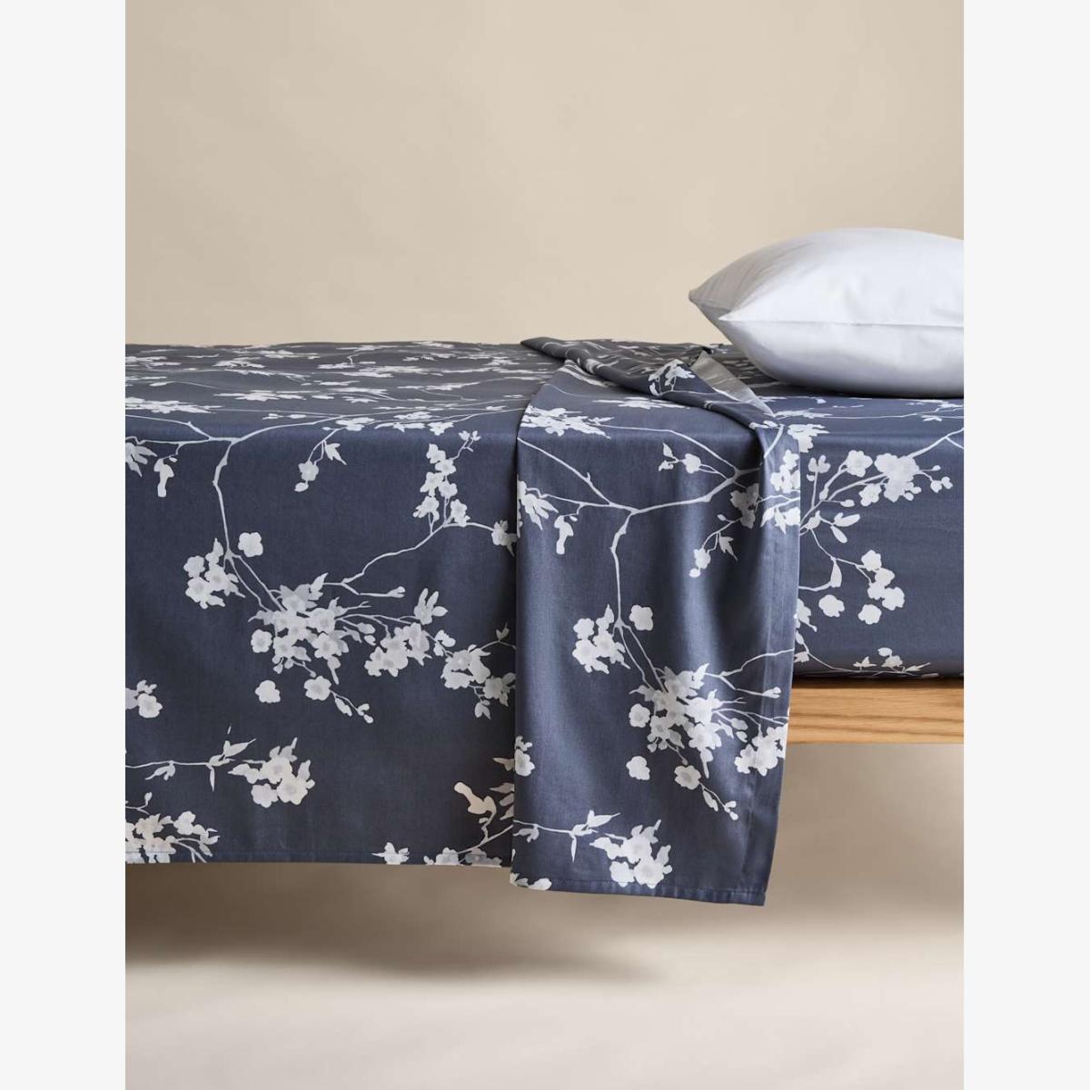 M&S Pure Cotton Sateen Cherry Blossom Flat Sheet Blue Mix