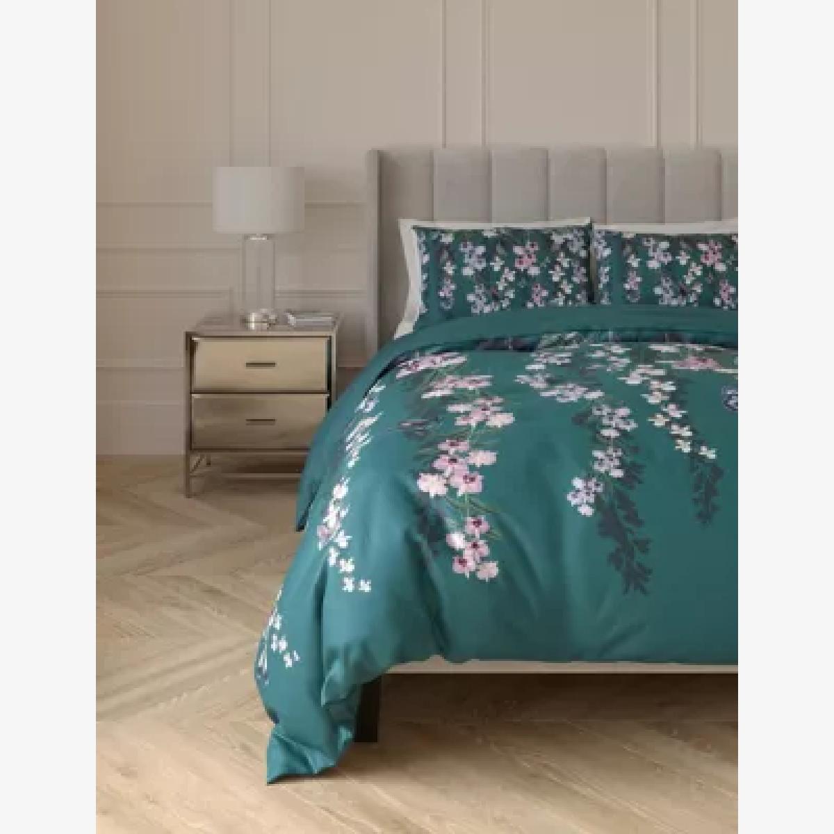 M&S Pure Cotton Sateen Hummingbird Bedding Set - DBL - Dark Teal, Dark Teal,Pink Mix
