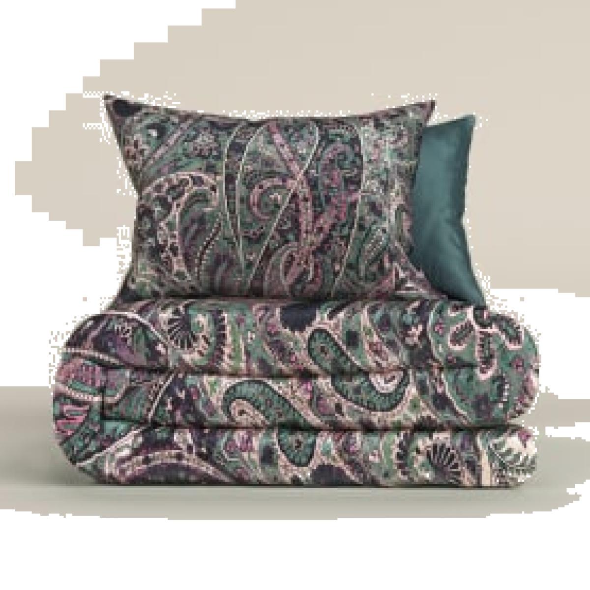 I love this bedding set for its relaxed yet sophisticated vibe, thanks to the paisley-inspired print in teal. It works particularly well in interiors with a nautical, bohemian, or eclectic theme, adding a pop of colour without overwhelming the space. Practical styling tips include pairing it with neutral or soft-coloured sheets to let the pattern stand out and layering with textured cushions or throws in complementary shades for added warmth and depth. Its cotton fabric also makes it a great choice for everyday use, combining comfort with ease of maintenance. Overall, it’s a versatile piece that can bring a touch of colour and pattern into a variety of bedroom styles.