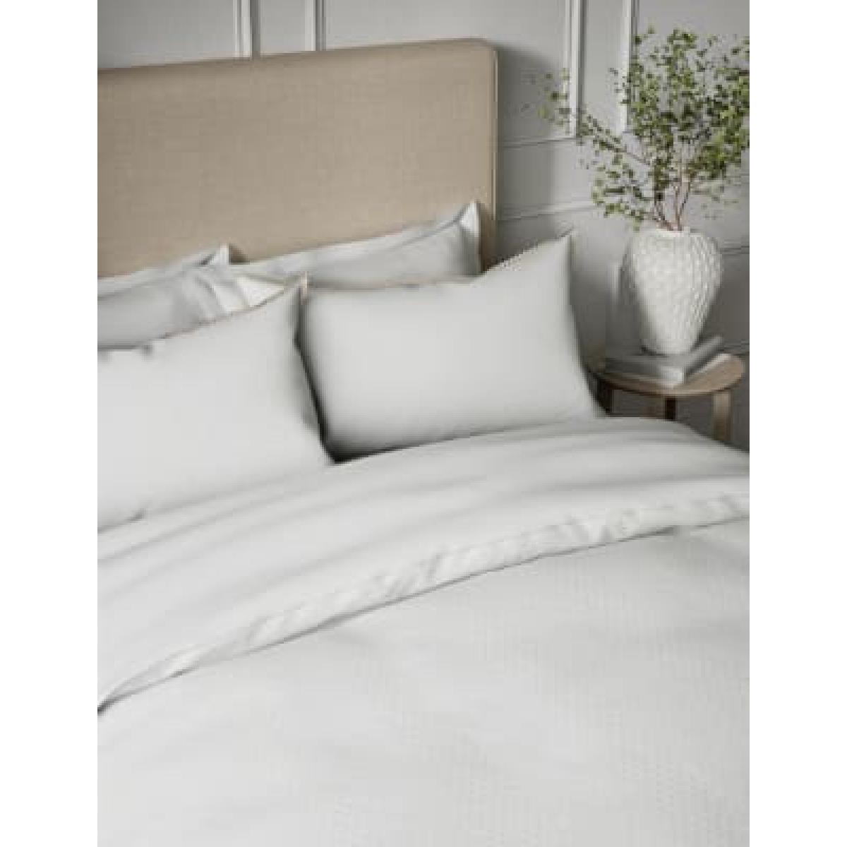 M&S Pure Cotton Striped Bedding Set - 6FT - White, White