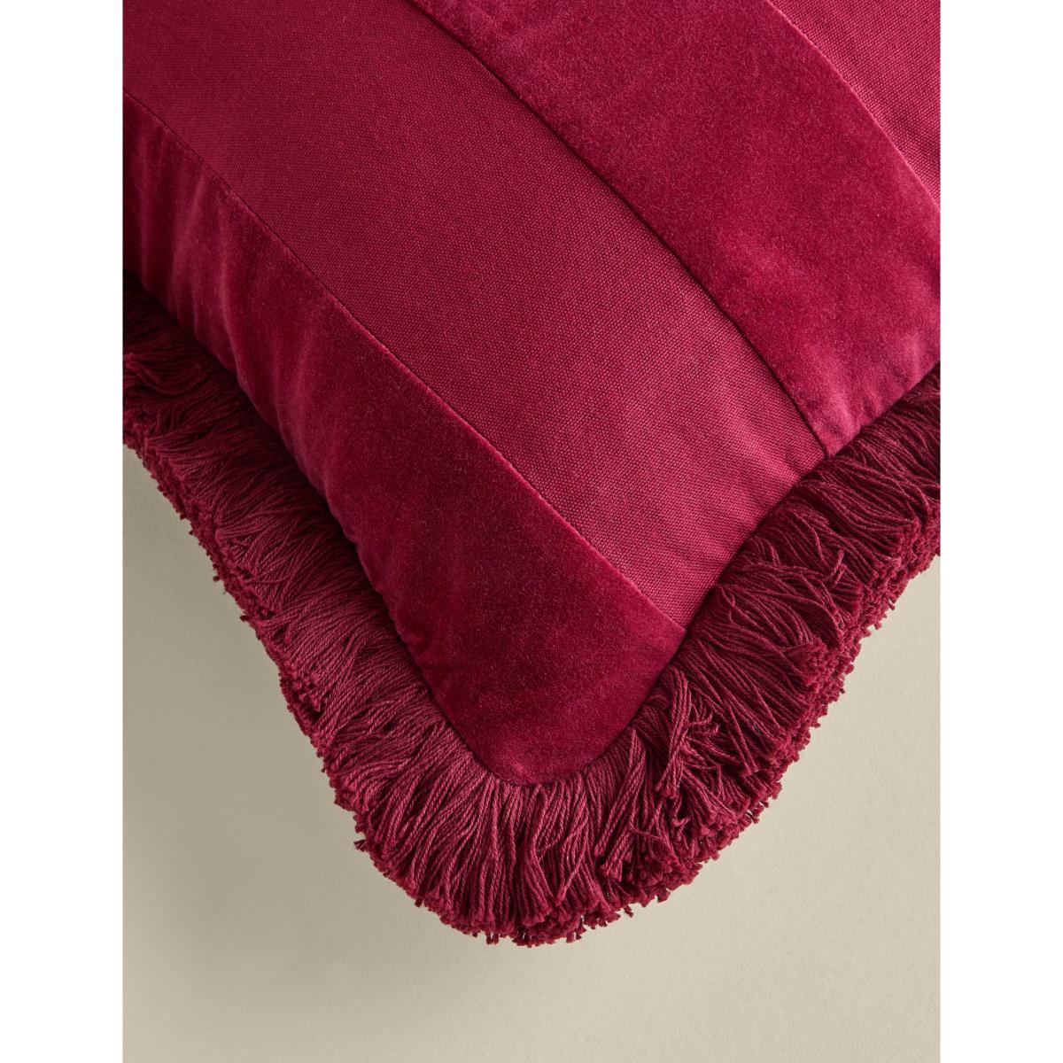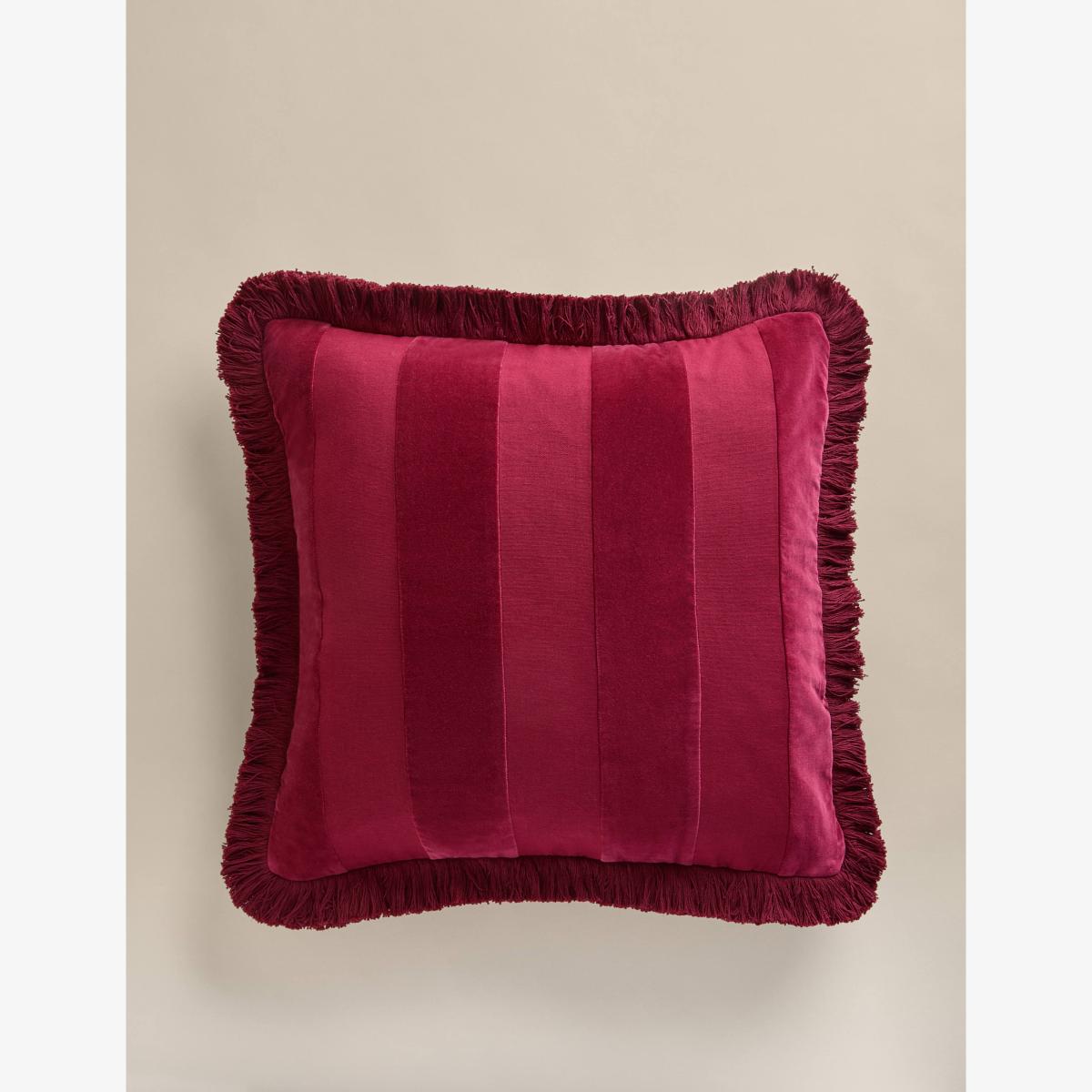 Add playful pattern and texture to your sofa with this decorative cushion. It's made from pure cotton and features velvet stripes for a luxuriously tactile feel. A frilled edge adds extra charm.