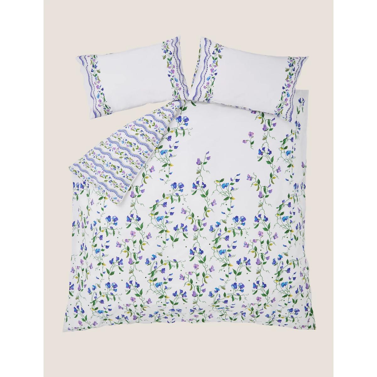M&S Pure Cotton Sweet Pea Bedding Set - 6FT - Blue Mix, Blue Mix