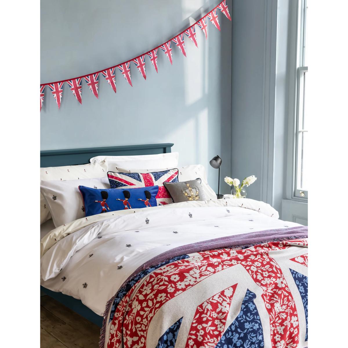 This pure-cotton throw captures a patriotic spirit with its all-over Union Jack print. Multicoloured fringe edges add a playful touch to this cosy homeware piece.