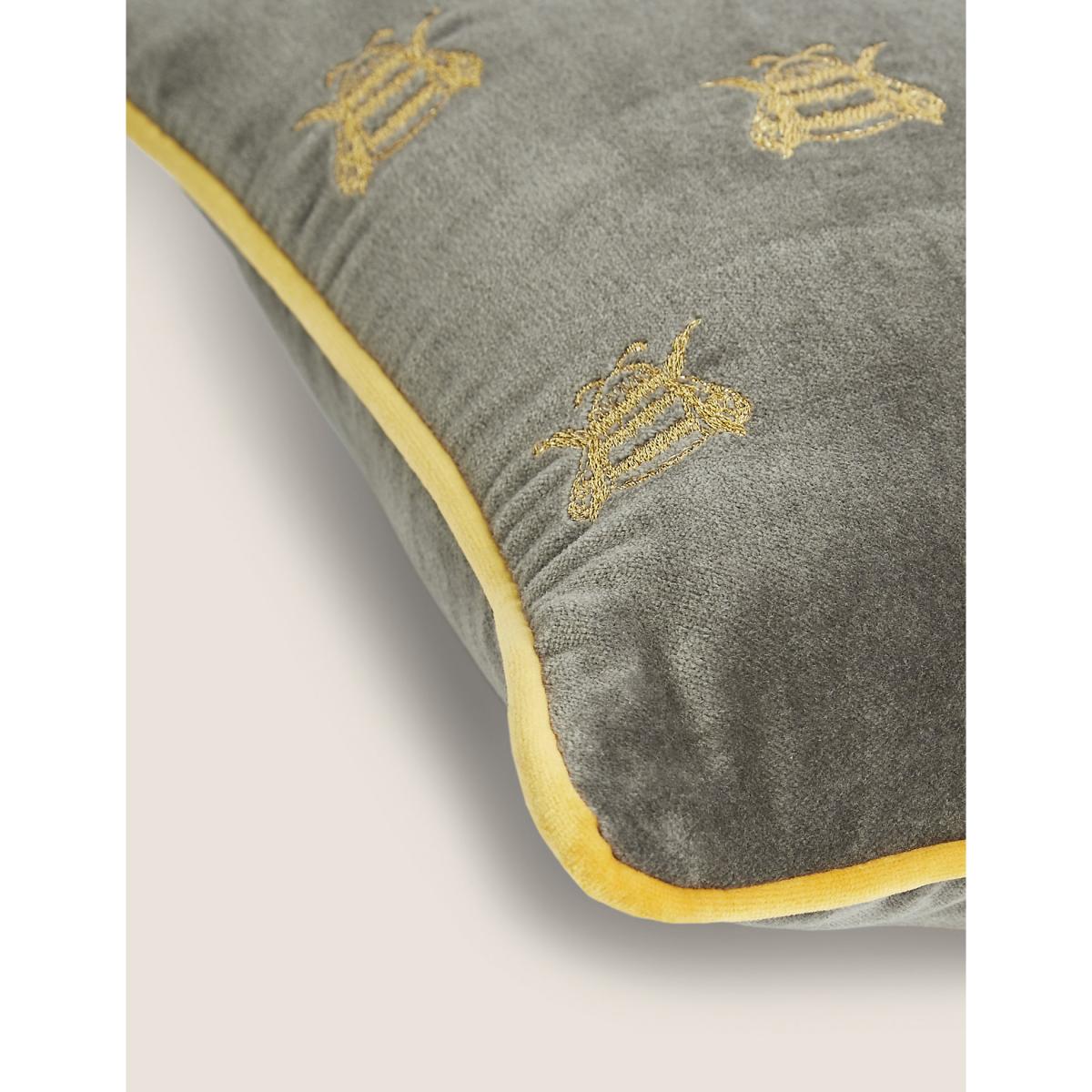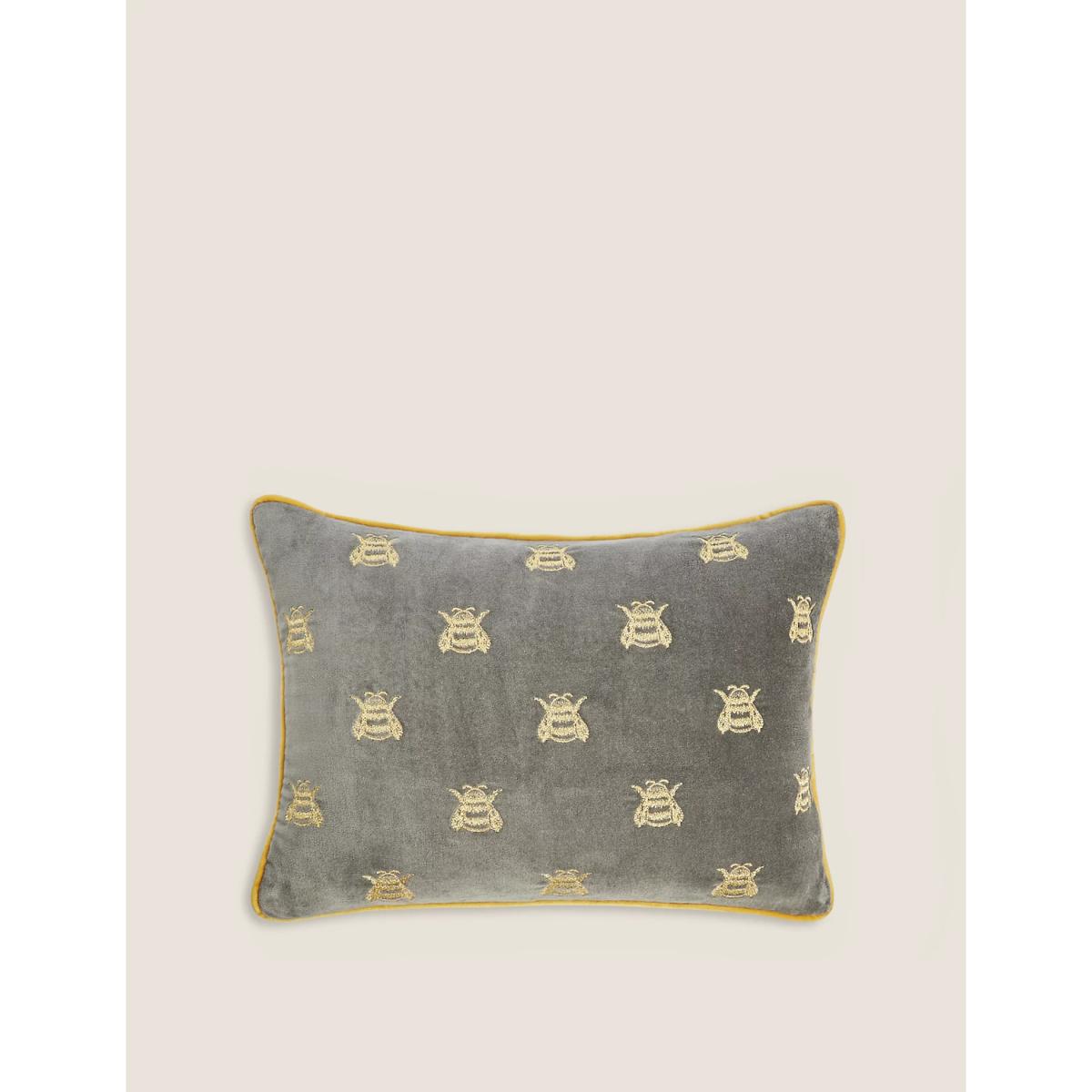 M&S Pure Cotton Velvet Bee Bolster Cushion - Soft Teal, Soft Teal,Mustard,Grey Mix