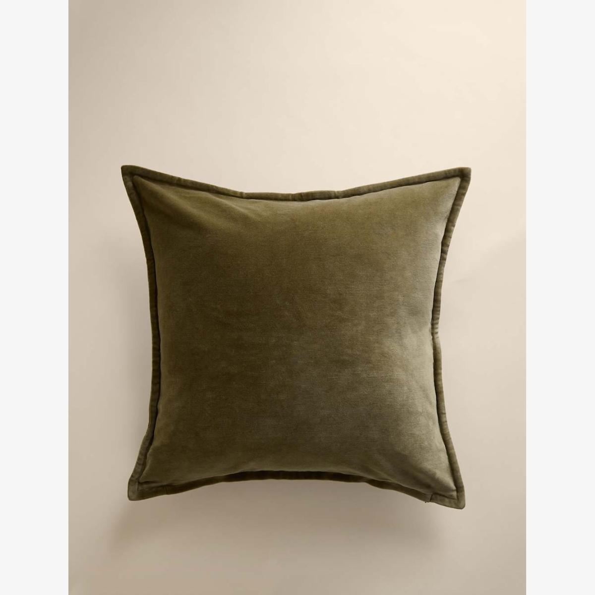 M&S Pure Cotton Velvet Cushion Olive