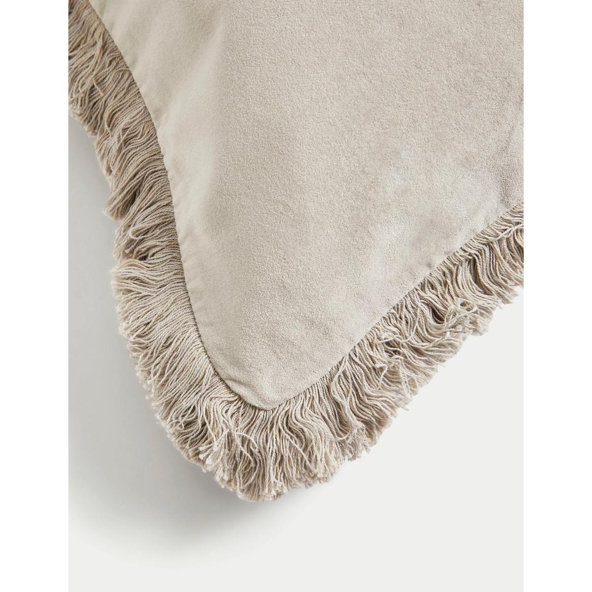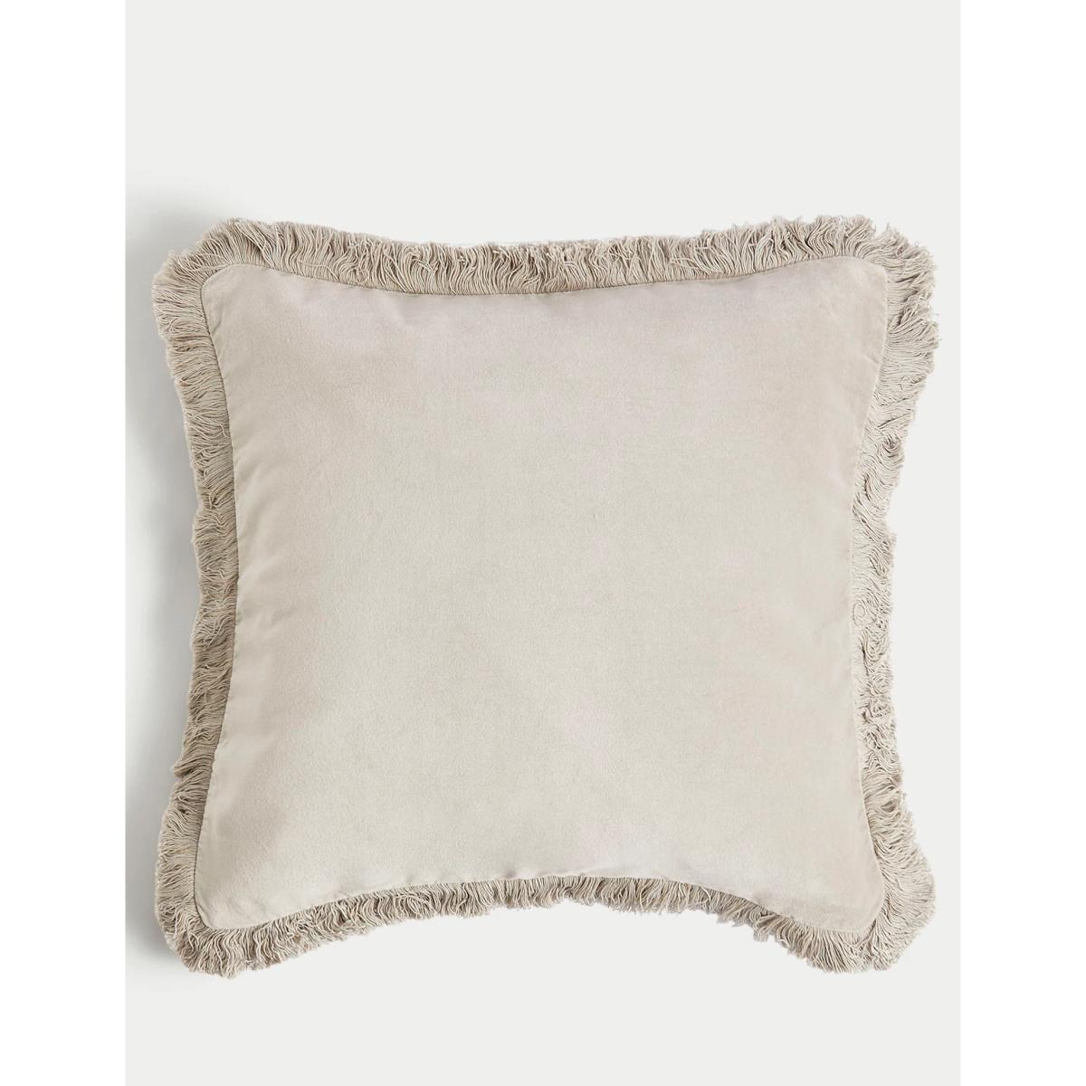Add a decadent touch to your interiors with this velvet scatter cushion. Crafted from pure cotton fabric and feather-filled. Finished with tactile fringed edges.