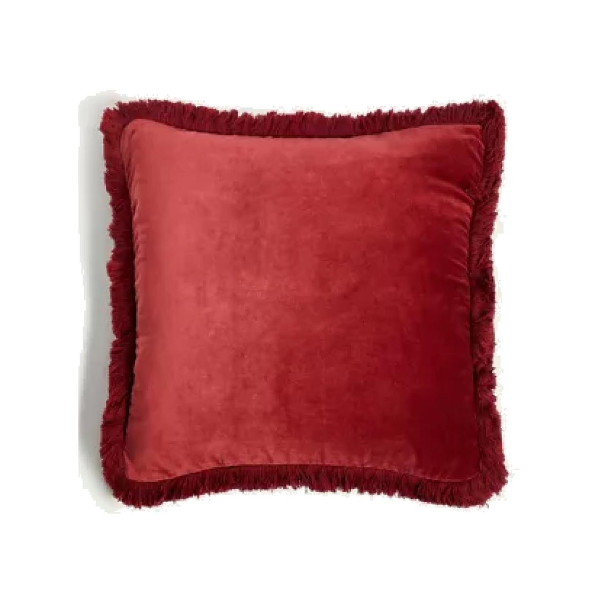 M&S Pure Cotton Velvet Fringed Cushion - Cranberry, Cranberry,Grey,Dark Gold,Navy,Dark Green