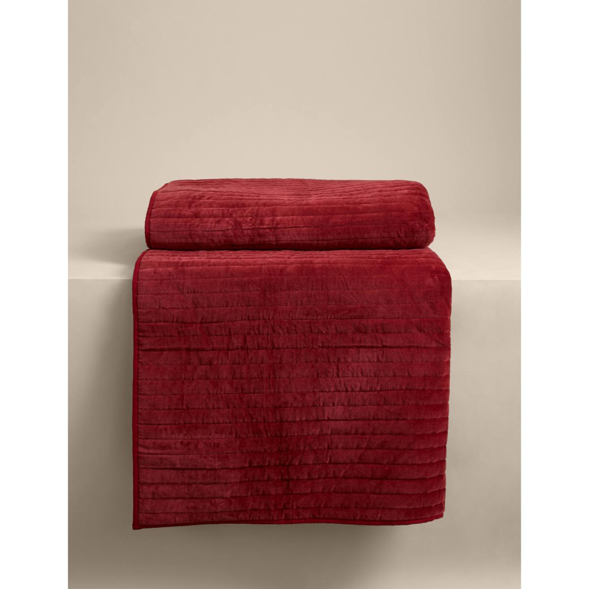 M&S Pure Cotton Velvet Narrow Stripe Bedspread Red