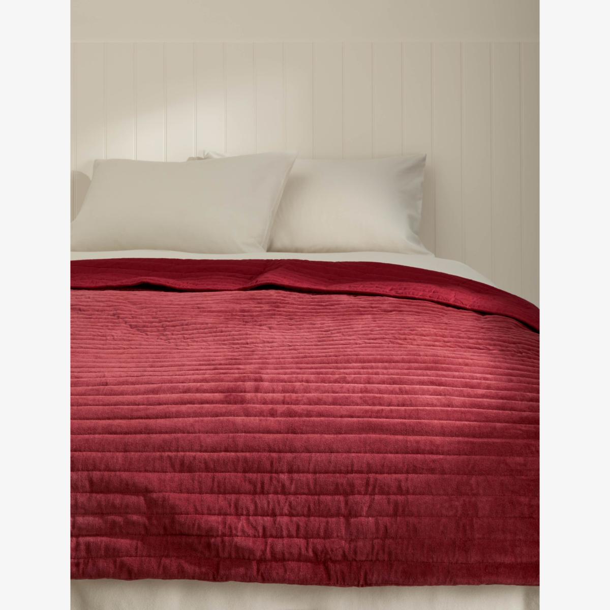 Bring a luxurious touch to your bedroom with this bedspread, crafted from pure cotton velvet for a gorgeously soft feel. Narrow quilted stripes create a textured look, while binding at the edges ensures a neat finish. This piece can be machine-washed and tumble-dried for convenience. Matching items are available.
