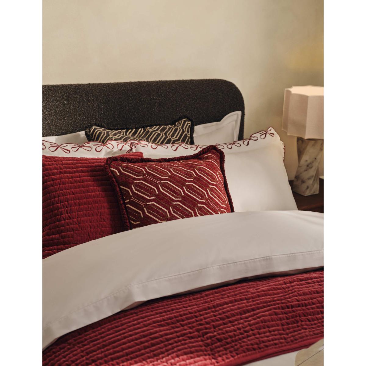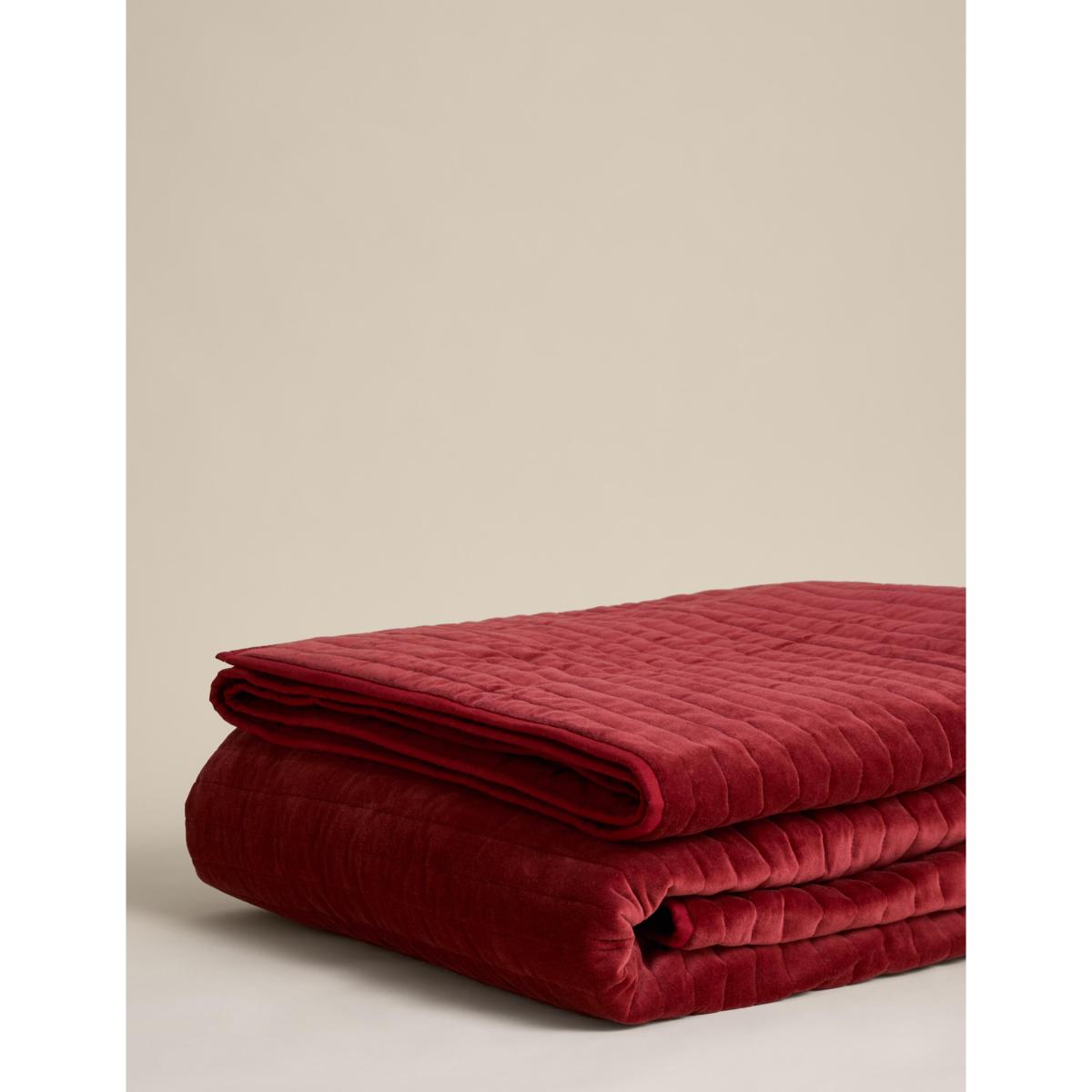 I love this bedspread for its rich red hue and luxurious velvet feel, which instantly adds warmth and a touch of opulence to a bedroom. Its narrow stripe pattern offers subtle texture that works well in both traditional and contemporary interiors. The velvet fabric is not only visually appealing but also practical, providing a cosy layer during cooler months. For styling, it pairs beautifully with neutral bedding and can be layered with textured cushions for added depth. It’s a versatile piece that can elevate a minimal scheme or complement a more maximalist look, making it a smart choice for those seeking both style and comfort.